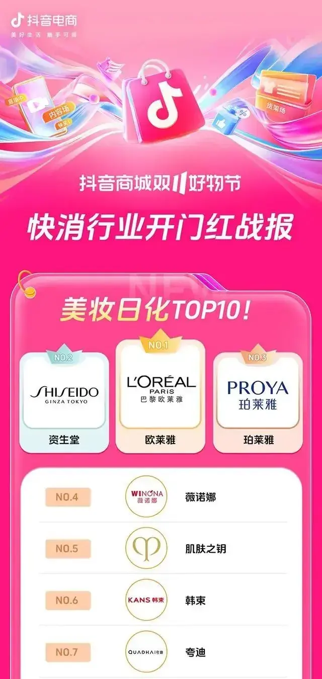 本土美妆的两大巨头中,珀莱雅正在经历前任总经理方玉友离职、家族二代侯军呈接手的过渡时期,这给它未来的增长带来了一些不确定性。至于上美,它旗下的主力品牌韩束过去受益于和抖音的强绑定增长飞速,也多次登顶抖音美妆榜,但在今年抖音10月18日-20日的美妆日化战报中,它甚至都没进前五。