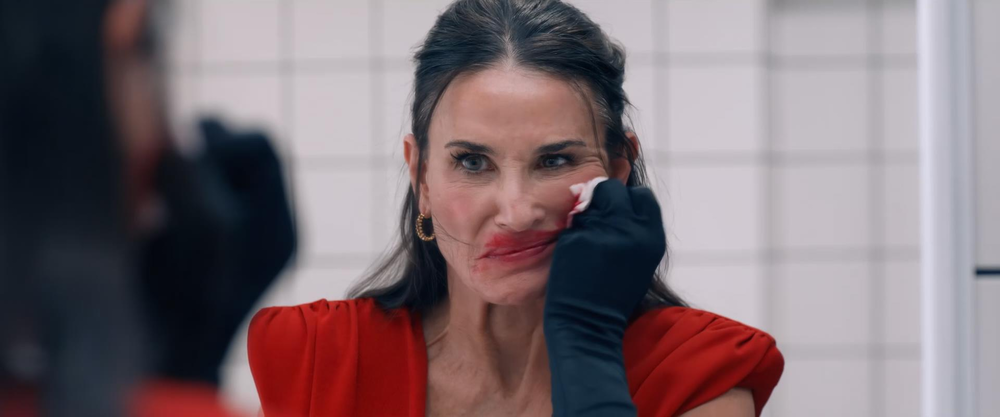 许多人第一遍看这部电影的时候,并没有认出来这部电影的第一女主角,也就是所谓「年老色衰」的Elizabeth,是在《人鬼情未了》中迷倒一片的老牌美人黛米·摩尔。