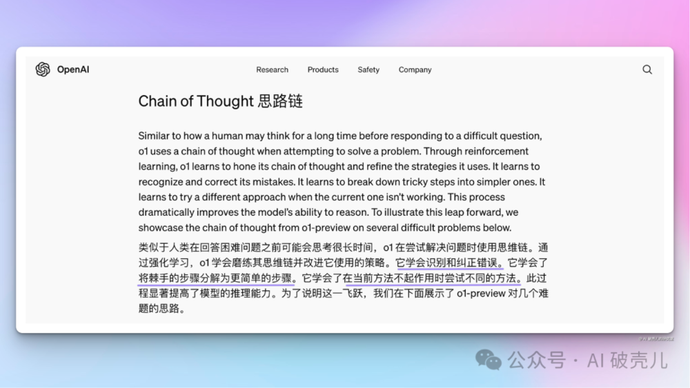 这些都受益于 o1 所具备的进阶推理能力,背后的原理也被称为「链式思考」或「思维链」。