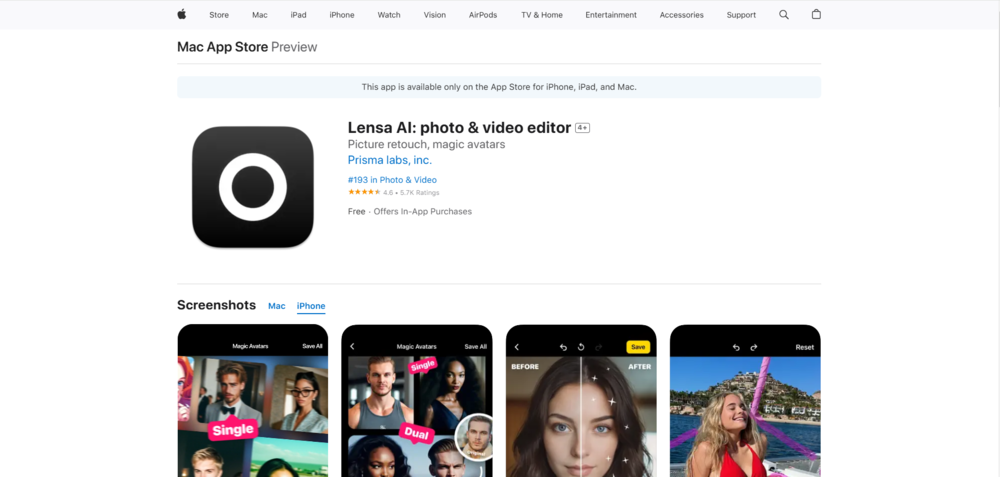 网站:https://apps.apple.com/us/app/lensa-ai-photo-video-editor