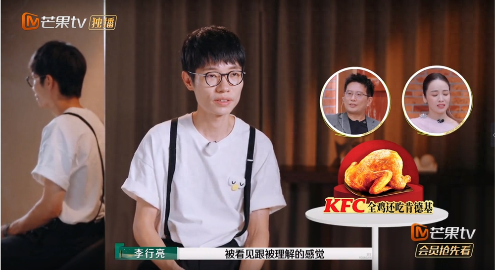 有眼尖的观众发现,新一期《再见爱人》中已经有了肯德基的赞助身影。它出现在嘉宾李行亮的采访画面中,出现在字幕横幅上,还出现在了节目官方海报的正下方。