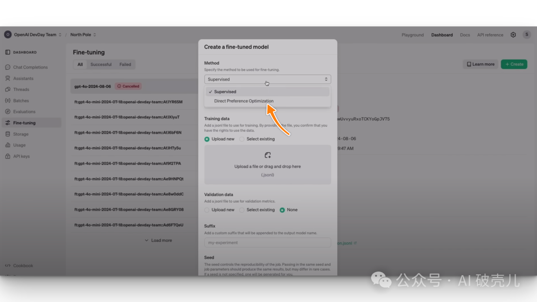 而在偏好微调中,开发者则需要提供一组针对用户问题的两个回复,并指出其中哪个响应更符合期望。模型会学习哪些因素导致了用户更喜欢某个响应,并据此调整其参数,而不是简单地模仿给定的输出。