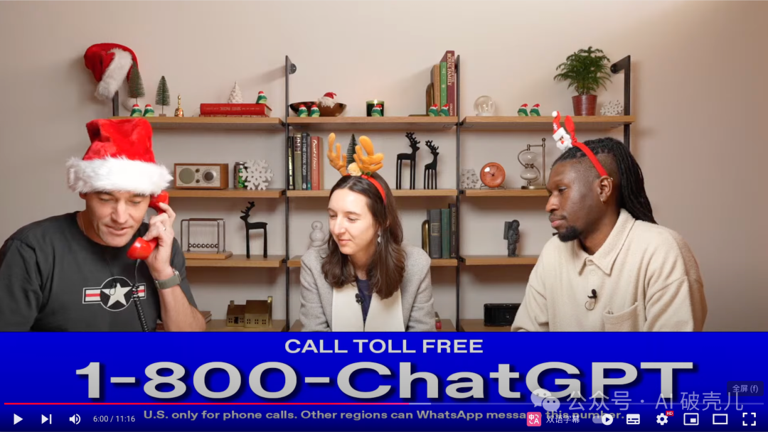 在美国,用户可以拨打 1-800-CHATGPT 直接与 ChatGPT 进行电话聊天,每月有 15 分钟的免费通话时间,注册应用可以获得更长通话时间。即使是老式翻盖手机或电话座机也可以。☎️