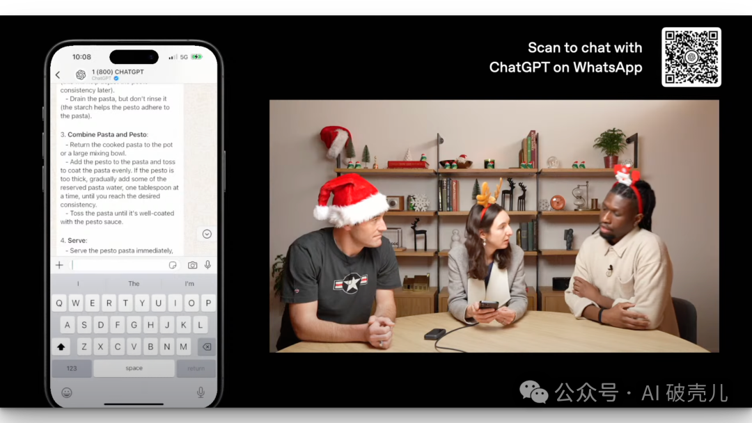 在全球范围内,用户可以通过 WhatsApp 发送消息与 ChatGPT 对话,无需注册账户即可使用,通过扫描下图中的二维码快速进入对话。