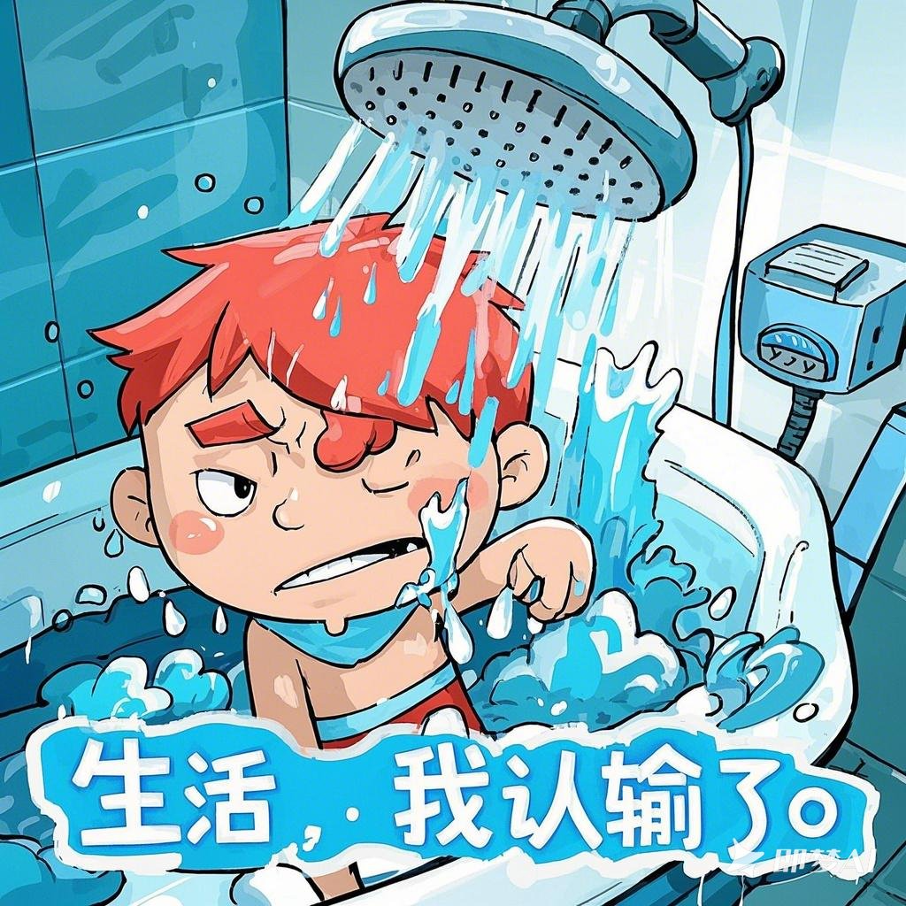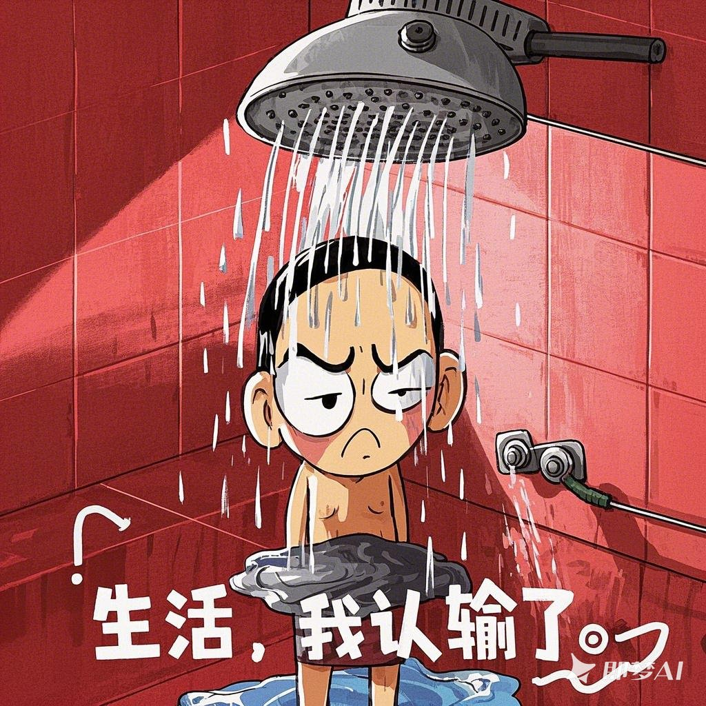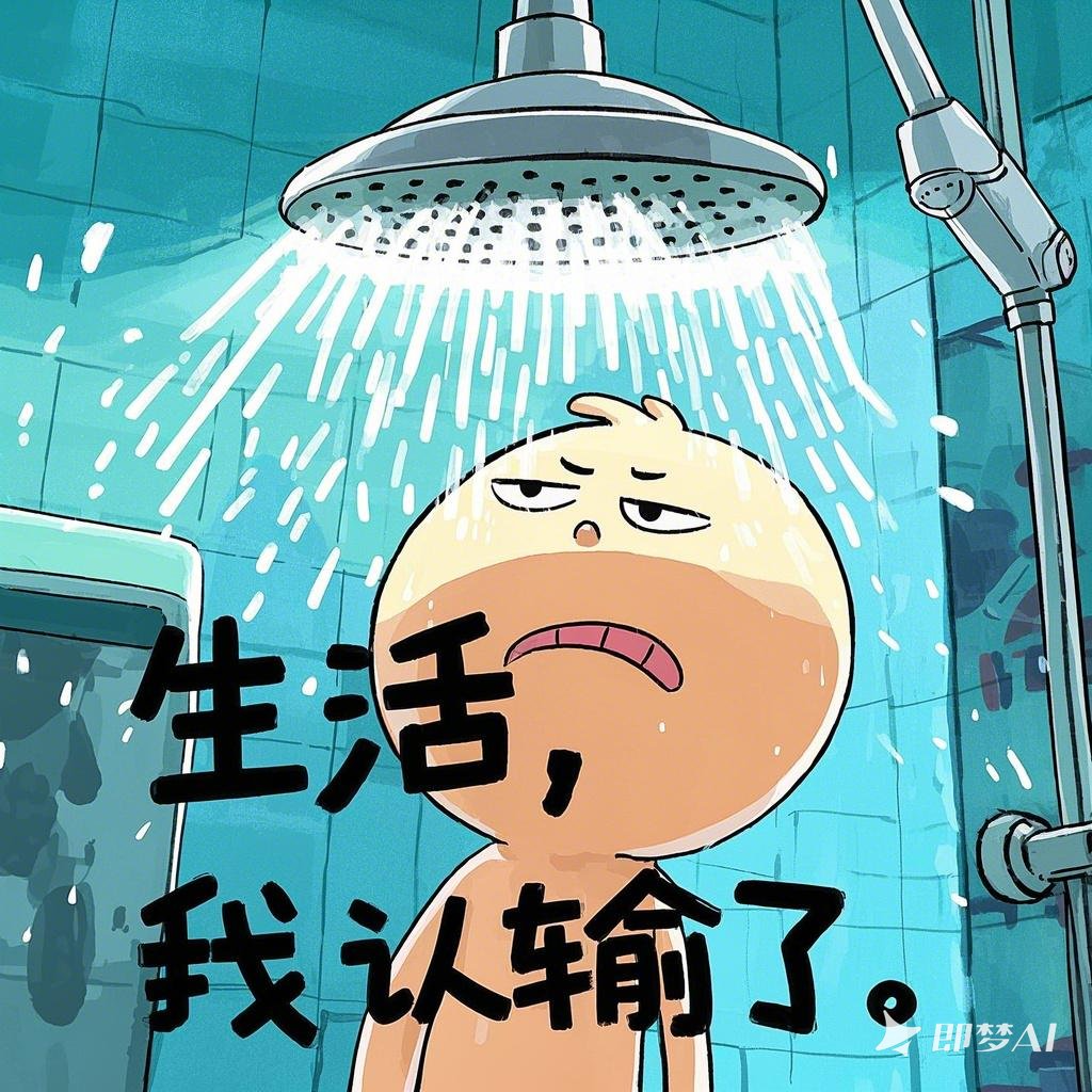 提示词: 一个动画形象人站在淋浴下,头顶着喷头水流不对,脸上露出生无可恋的表情,文字:“生活,我认输了。”提示词: 一个动画形象人站在淋浴下,头顶着喷头水流不对,脸上露出生无可恋的表情,文字:“生活,我认输了。”提示词: 一个动画形象人站在淋浴下,头顶着喷头水流不对,脸上露出生无可恋的表情,文字:“生活,我认输了。”