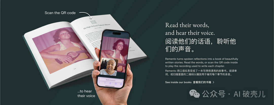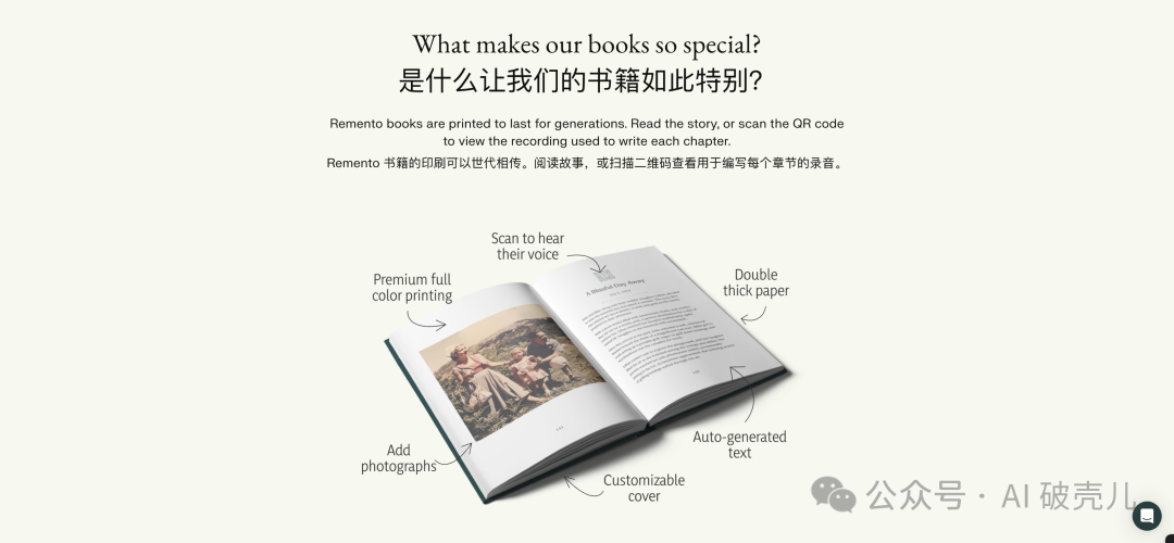 而有人却做了这样一个工具:通过 AI 帮助人们整理记忆,并用图文保留下来,制作出独一无二的“人生回忆录”。