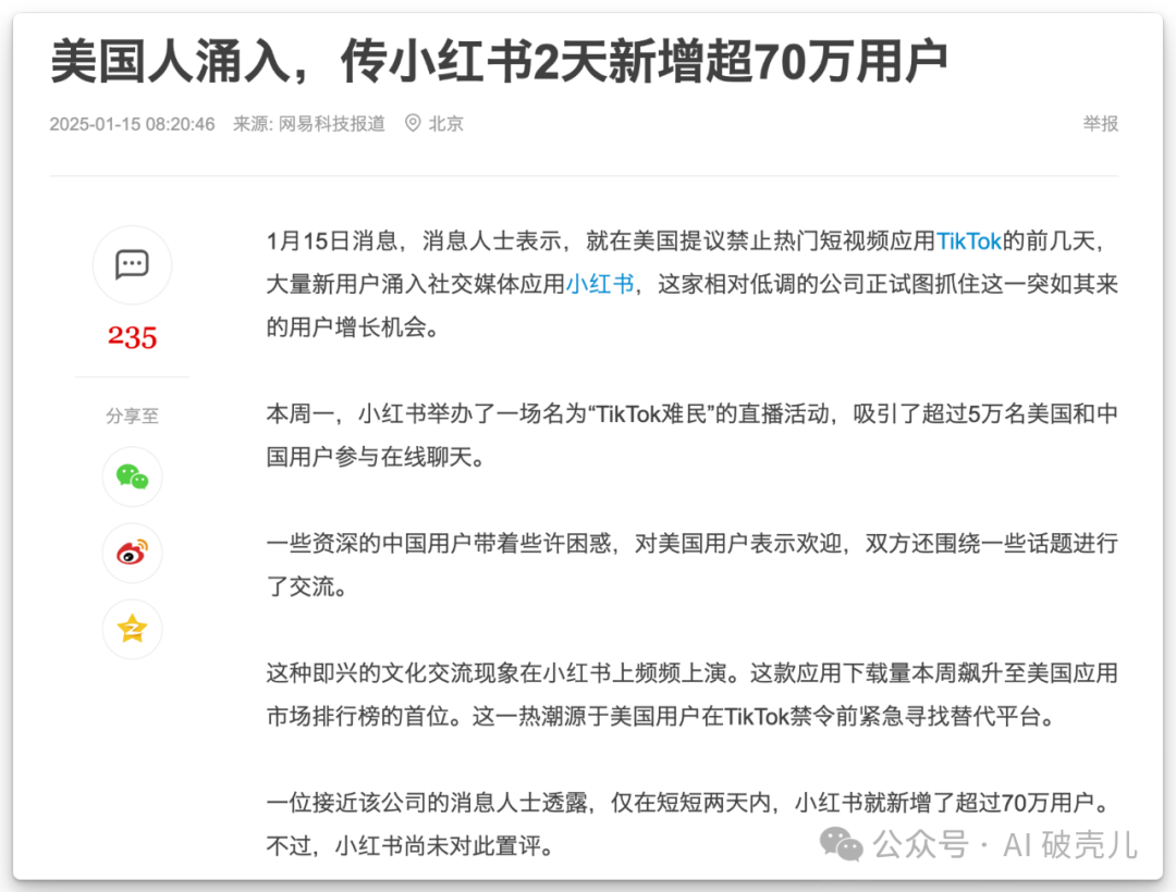 本文来自微信公众号:AI 破壳儿,原文标题:《Tiktok 难民涌入小红书,暗藏哪些 AI 工具创新机遇?》