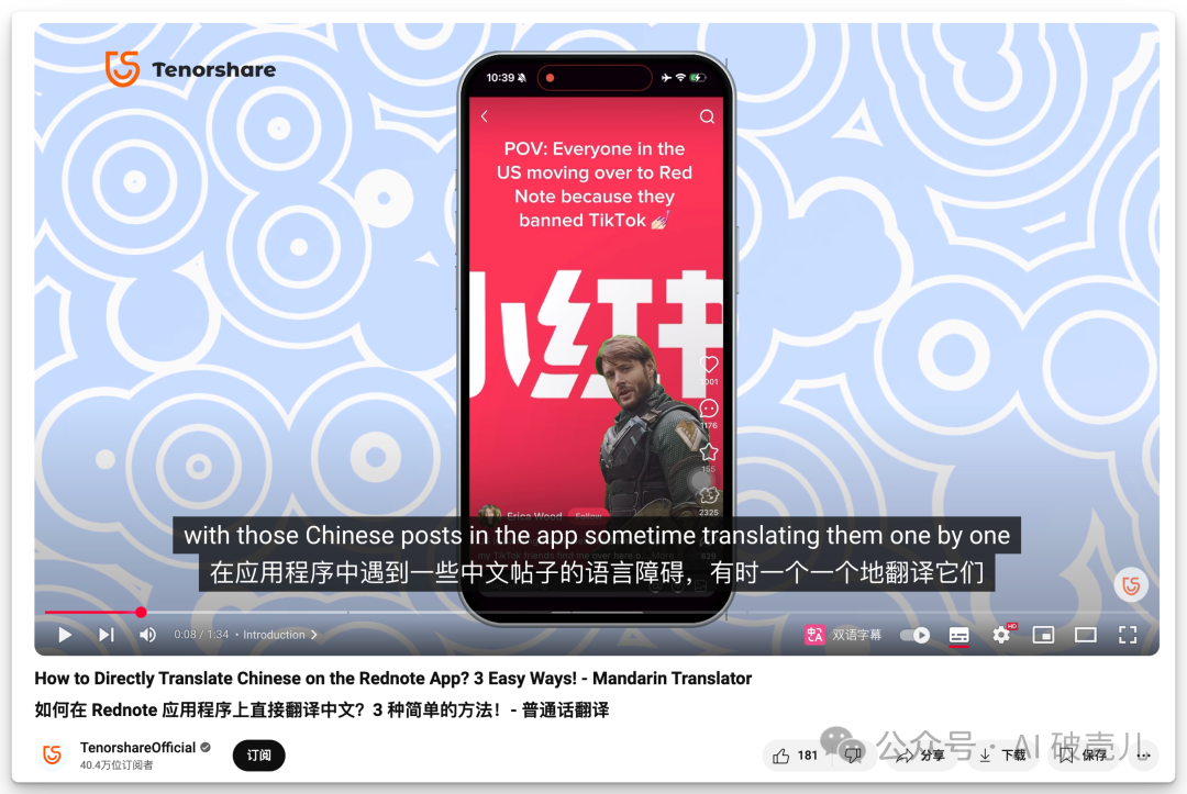 这也意味着,原本只需要中国人能看懂的内容,现在最好让海外用户也能同时理解。因此,中文博主大概率也会有内容双语化的需求。