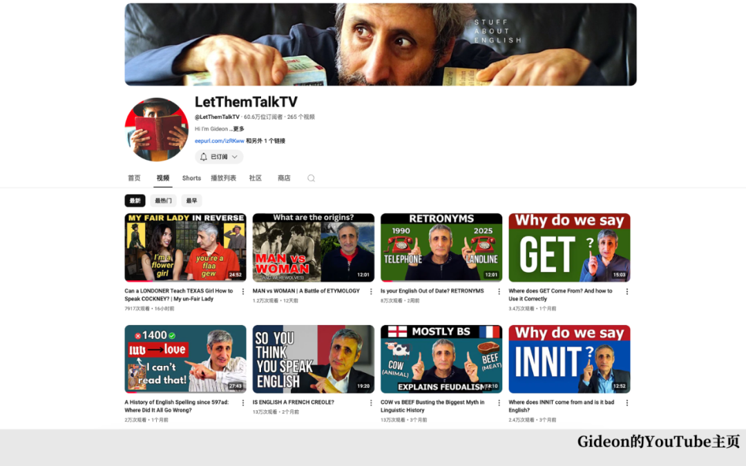 60岁的Gideon的人生轨迹更加反转,作为一位在曾法国巴黎开设英语学校的英国人,他却关掉实体学校,摇身一变成为了拥有60万粉丝的YouTube超级网红。