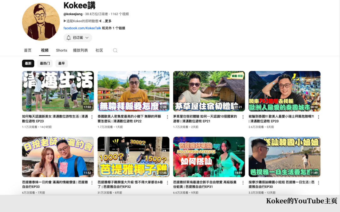 Kokee是我在清迈客栈偶遇的马来西亚人,16天去了5个国家9个城市,拍美食拍异域风情更拍美女,有些选题和画面内容相当让人血脉喷张。我调侃他是“擦边博主”,他都会认真地纠正我:“我是知识型博主!”