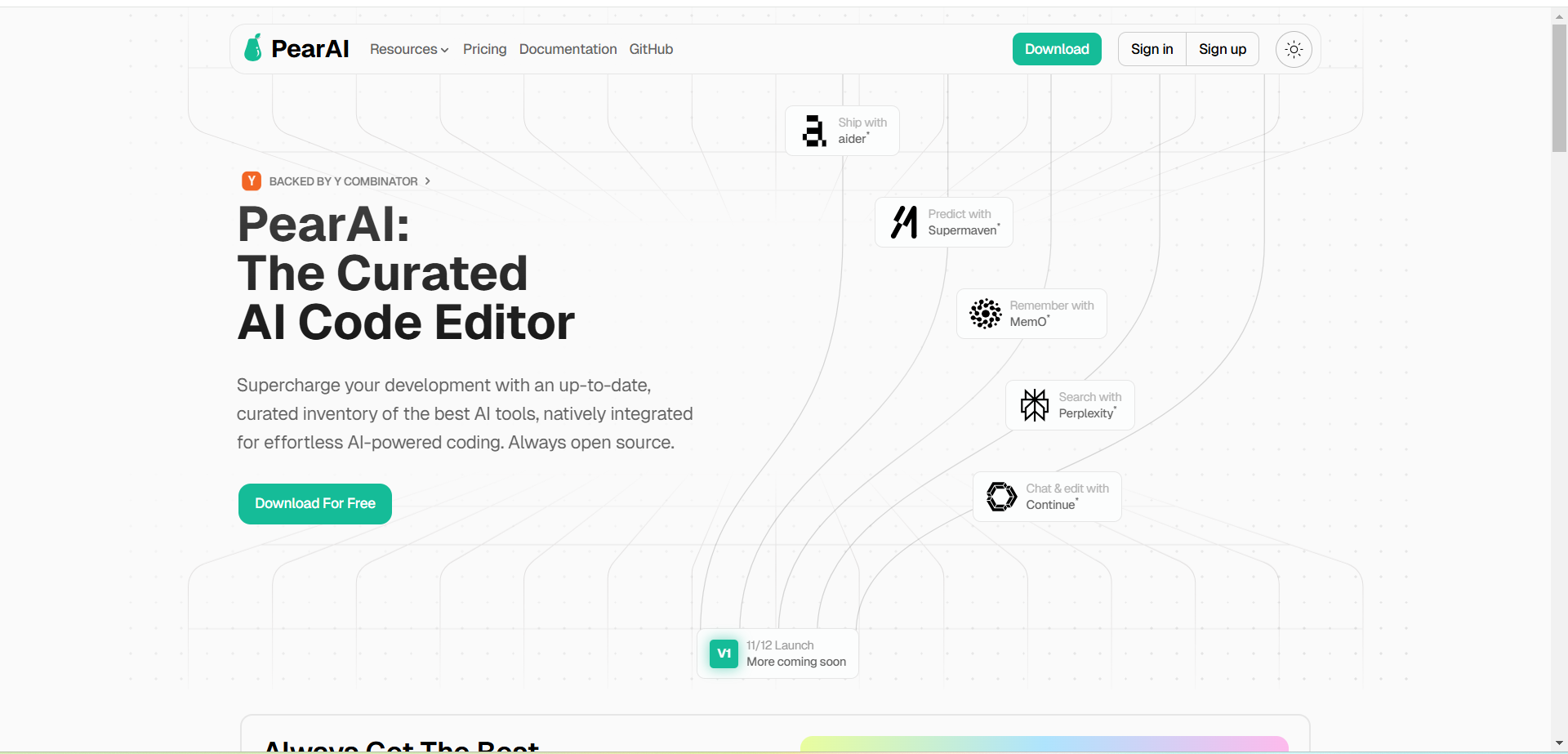 一、PearAI-用于快速开发的开源 AI 代码编辑器PearAI 是一款基于人工智能的开源代码编辑器,旨在简化和加速开发流程。它具有人工智能聊天、内联提示和调试等各种功能。网站:https://trypear.ai/二、Patched-使用 AI 工作流程自动化开发任务Patched 是一款开源工具,利用人工智能自动执行常见的开发工作。该工具通过可定制的工作流程帮助简化开发生命周期。网站:https://www.patched.codes/三、CommandDash-在几分钟内为任何图书馆创建人工智能代理CommandDash 是一种人工智能 (AI) 工具,旨在通过提供可提供个性化帮助的代码代理来促进软件开发。网站:https://commanddash.io/四、JetBrains-利用 AI 为您的工具提供支持,保持流畅JetBrains AI 服务和 In-IDE AI Assistant 是专门为增强开发人员环境和团队工具而设计的工具。网站:https://www.jetbrains.com/ai/五、Gitlab code suggestions-利用人工智能辅助代码建议加速编码GitLab 的人工智能辅助代码建议是一种创新工具,旨在通过提供代码块的预测完成、定义函数逻辑、生成测试以及建议正则表达式模式等常见代码来提高编码效率,所有这些都在熟悉的编码环境中进行。网站:https://about.gitlab.com/solutions/code-suggestions/六、Taiga-Slack 中的 AI 编码导师Taiga 是一款基于人工智能的工具,旨在帮助和指导用户通过 Slack 交互式学习软件工程。作为 Coyotiv 软件工程学院的产品,Taiga 使用 ChatGPT 提供实时反馈、指导和定制建议。网站:https://asktaiga.ai/七、StarChat-使用 StarChat 探索人工智能驱动的聊天StarChat Playground 工具是由 Hugging Face(一家专门从事自然语言处理的公司)创建的 ML 应用程序发现平台。网站:https://huggingface.co/spaces/HuggingFaceH4/starchat-playground八、The Coder-您的人工智能编码伴侣Robbie 是一款人工智能驱动的工具,旨在协助编码。其目的是为程序员的日常任务提供支持,在整个创建和调试过程中充当虚拟伴侣。网站:https://www.messengerx.io/thecoder九、Eval-您的 AI Codepilot 可加快软件开发速度Eval 是一款人工智能驱动的工具,旨在增强编码技能、简化工作流程并提高效率。它提供人工智能辅助结对编程,这是一项强大的功能,可以帮助用户更快地协作和编写代码。网站:https://www.evalplatform.com/十、CensysGPT-简化 Censys 查询以实现高效的互联网识别CensysGPT Beta 是一个工具,可简化构建有效且高效的 Censys 搜索查询的过程。该工具旨在让用户能够快速、轻松地获取有关互联网上主机的见解,从而执行主动侦察操作。网站:https://gpt.censys.io/