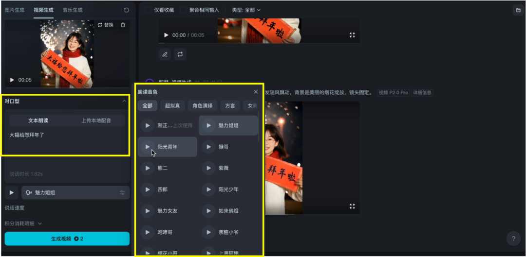 你还可以选择“对口型”功能,让你的照片直接说话。