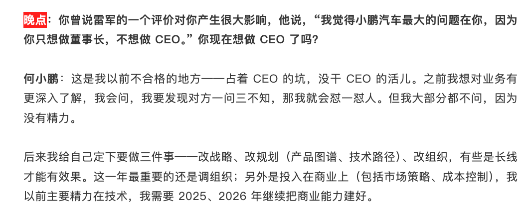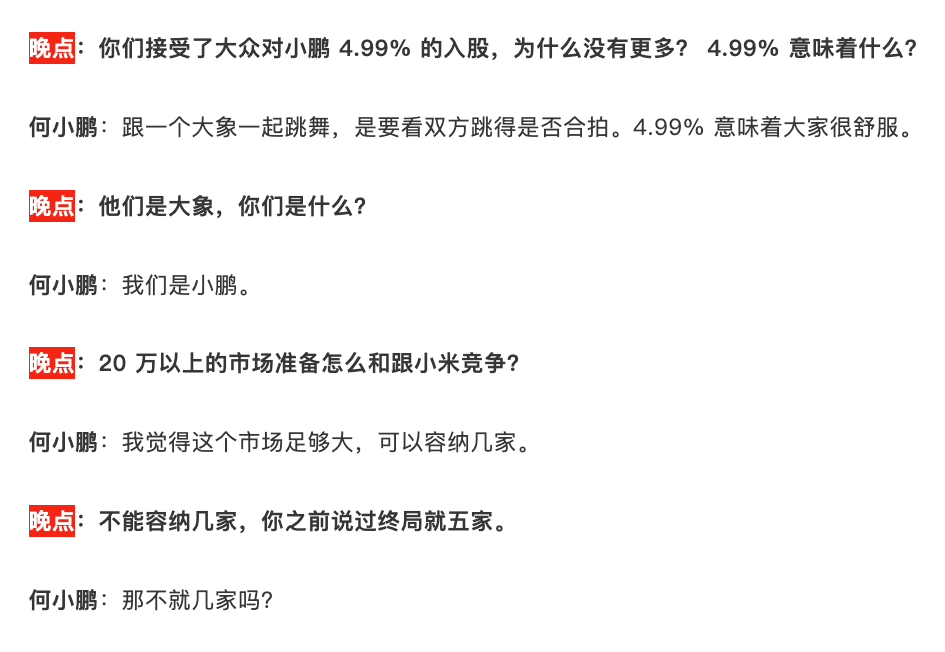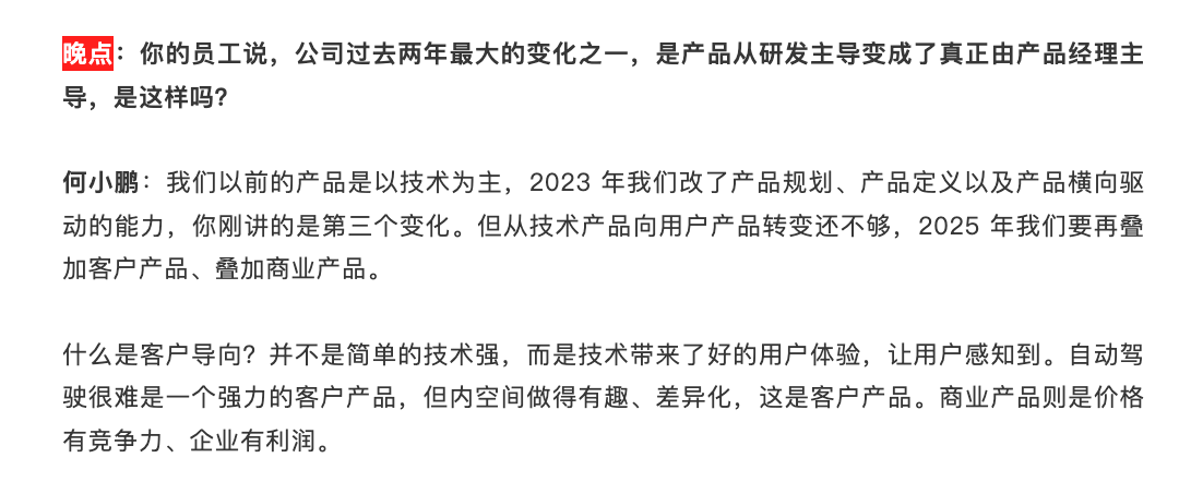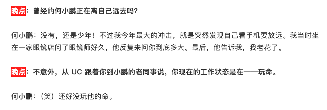 本文来自微信公众号:产品变量,作者:亨亨,原文标题:《晚点对话何小鹏,我从中听到的言外之声》