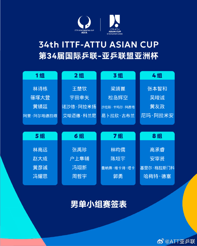 根据2月18日下午的抽签仪式结果,林诗栋、王楚钦、梁靖崑、林高远等所在的男单小组赛签表如下。