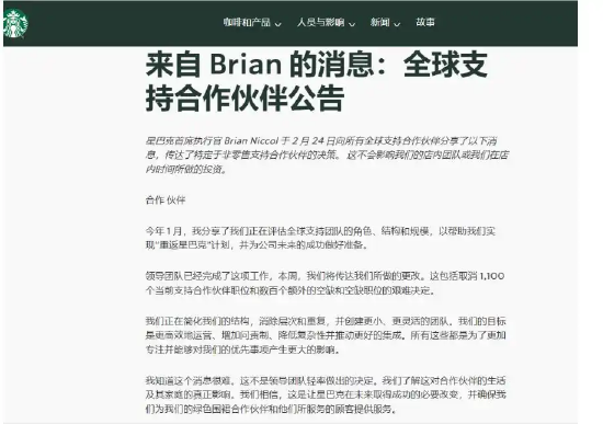 据业内分析,星巴克此次裁员数量,约占星巴克全球非门店员工总数的7%。