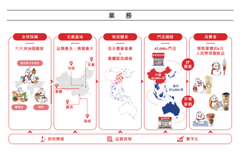 招股书中提到,当前,蜜雪冰城已打造了中国现制饮品行业内规模最大的、高度数字化的完整端到端供应链体系,覆盖采购、生产、物流、研发及品质控制等关键环节。