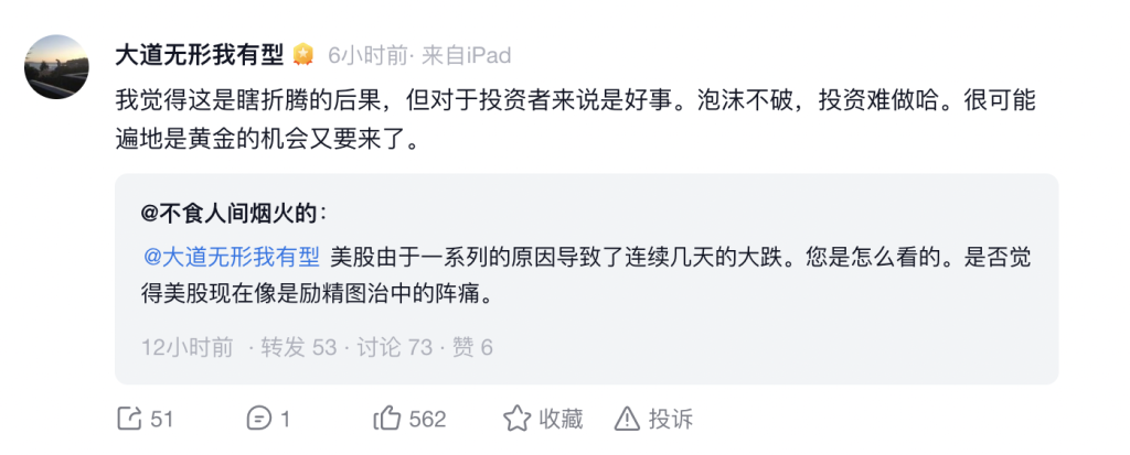 美股为何暴跌?段永平认为,这是瞎折腾的后果,但对于投资者来说是好事,“泡沫不破,投资难做哈。”在他看来,很可能遍地是黄金的机会又要来了。