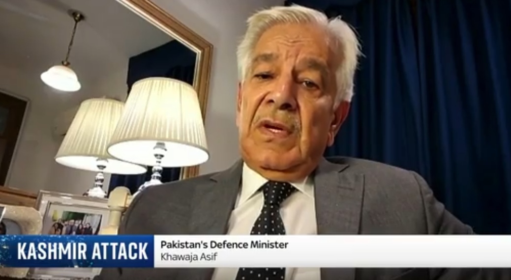 巴基斯坦国防部长阿西夫接受采访,图源:英国天空新闻台