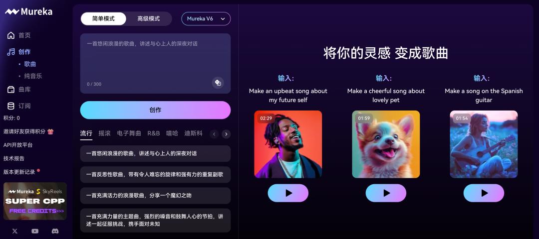 Mureka是昆仑万维推出的AI音乐生成系统,包含底层模型和商业应用平台两个层面。