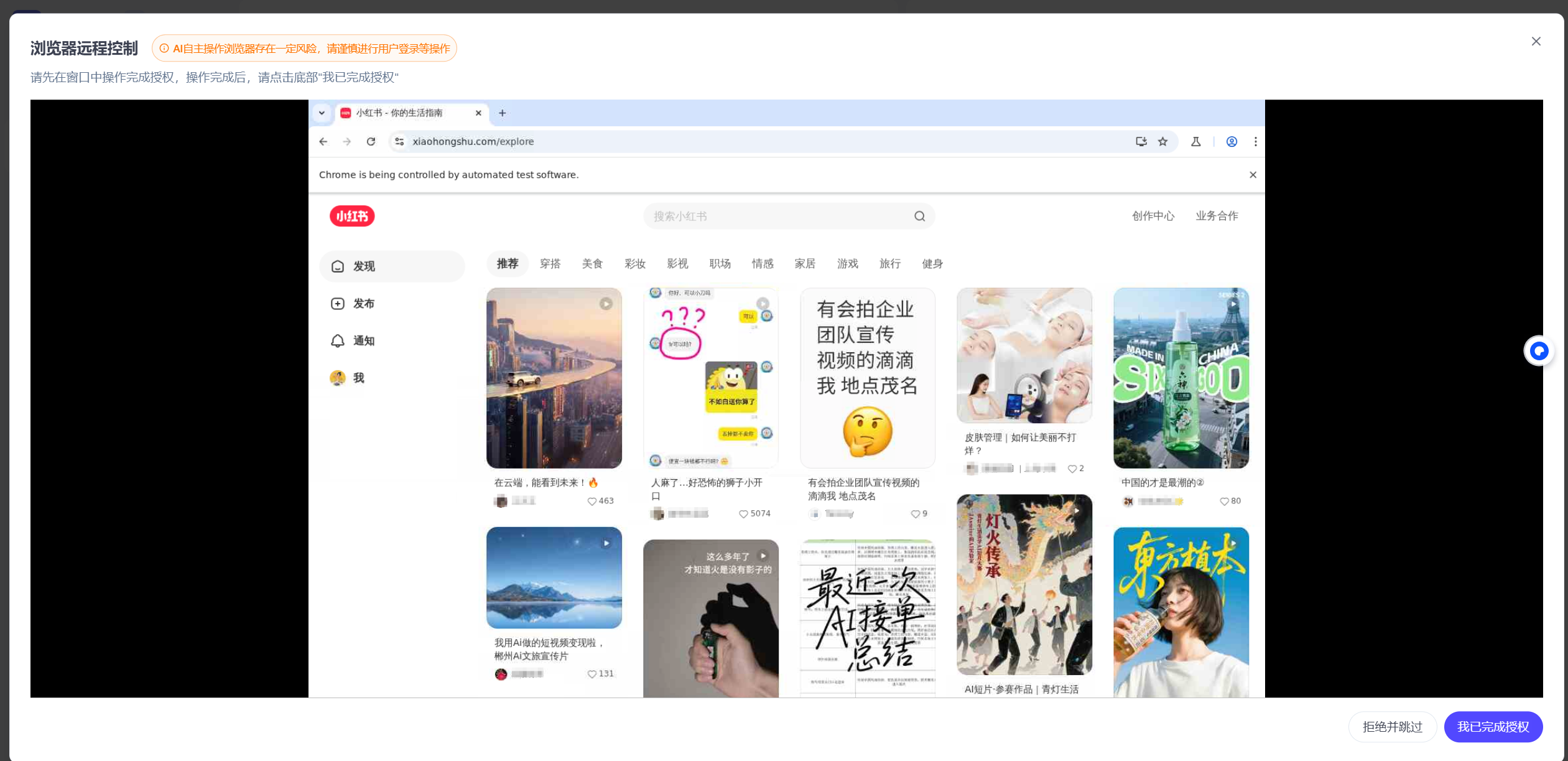 也就是在网页登陆你的小红书,点击立即接管,然后扫码登录即可。