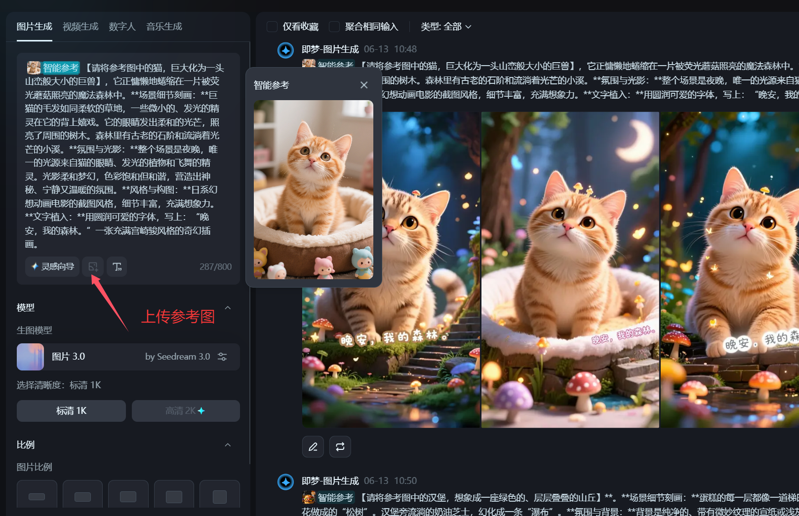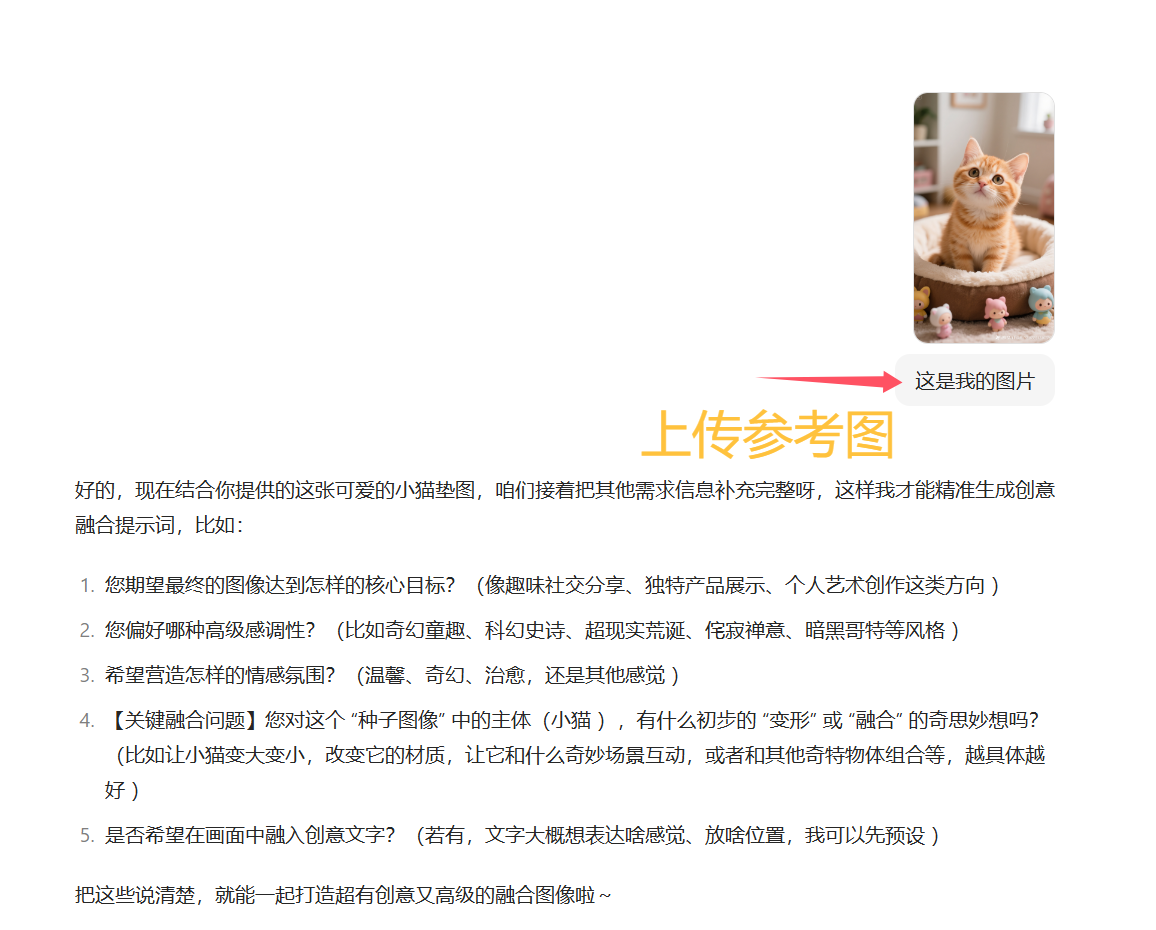 然后接下来就是上传你要改造的参考图,比如一张猫咪的图片。