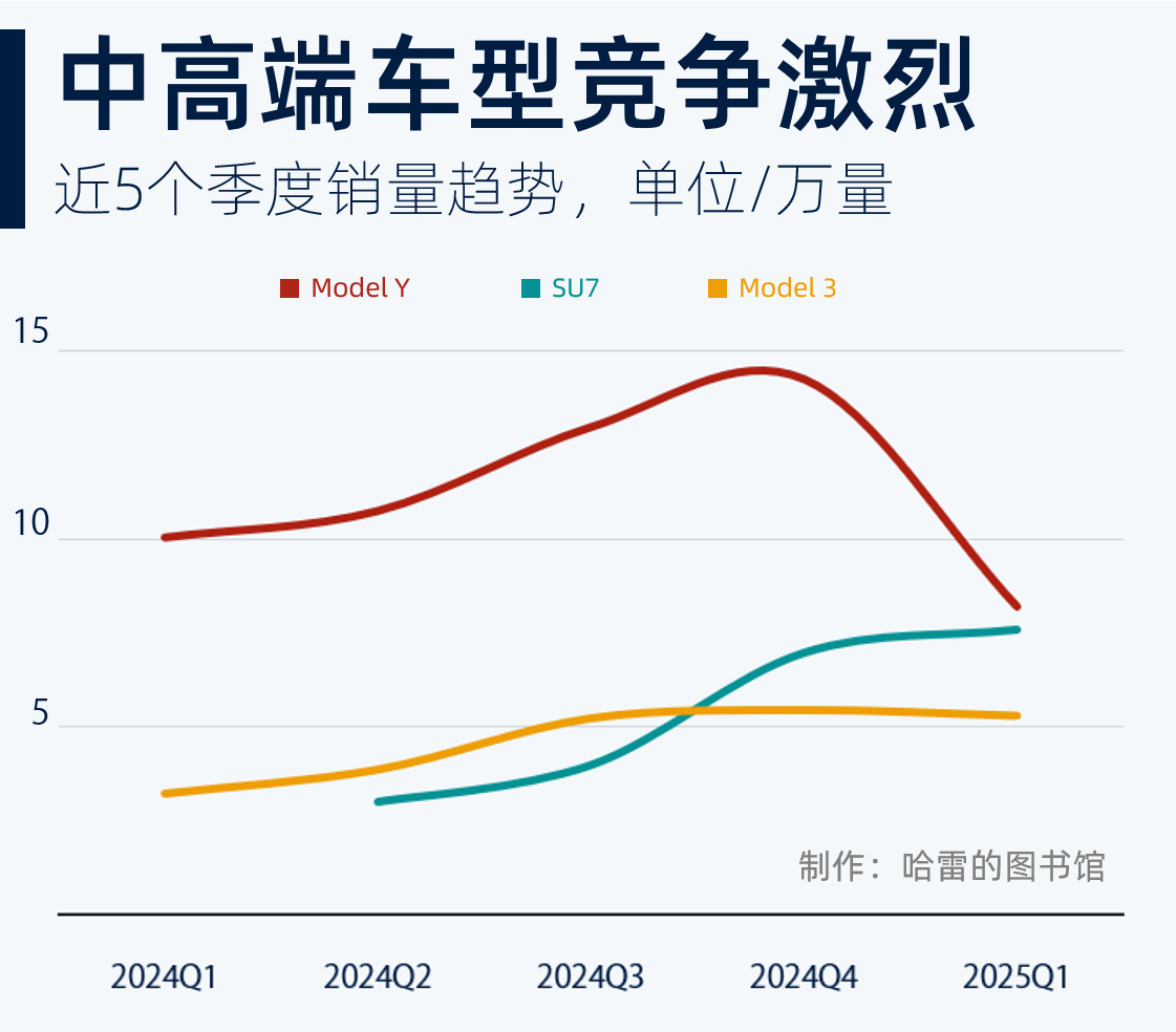 而降价出货,是见效最直接,也是被迫无奈的做法,但Model Y的定价策略已陷入进退两难的困境。从2021年的33.99万元起步价,到如今多轮降价后的25万元左右,价格战越打越激烈,效果却在明显递减。消费者开始习惯性地"等降价",反而抑制了购买欲望。更严重的是,被动地频繁降价会直接损害品牌的高端形象,也让早期车主产生了强烈的心理落差,口碑效应开始转向负面,此次YU 7的发布,特斯拉的价格策略相比友商就非常克制,但这是一个“不降价销量下滑,降价伤害品牌价值”的两难选择,归根到底,在20-35万元区间的中高端SUV市场,Model Y已经难以形成压倒性的性价比优势。