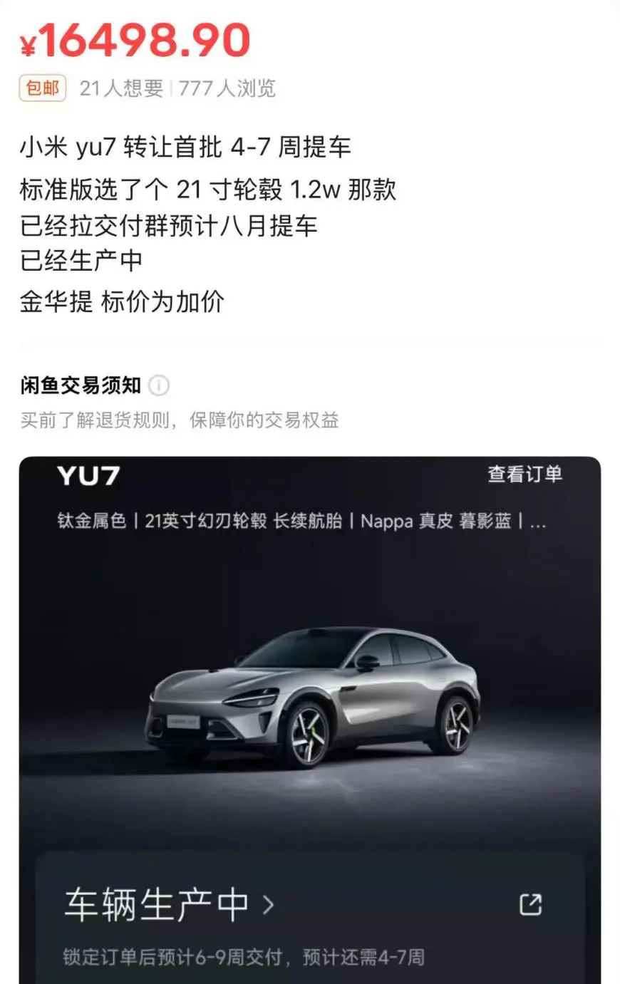 据证券时报,而因为新车的持续火爆和交付时间过长,随着一部分小米YU7已经交付,目前市场上已出现了一批小米YU7二手车,且溢价数万元。