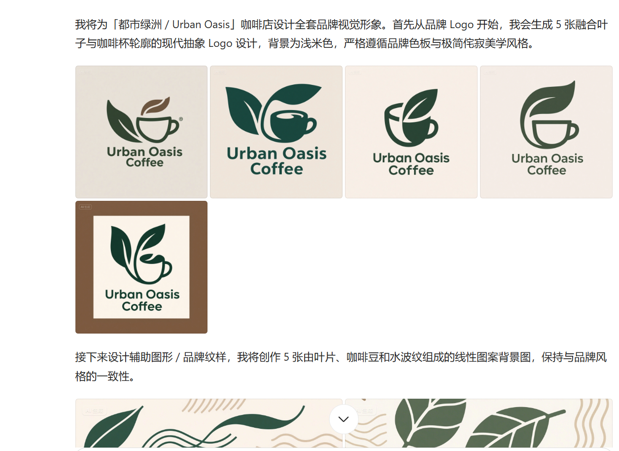 我输入围绕一家全新的咖啡店名为:都市绿洲,设计一套完整的品牌视觉形象。