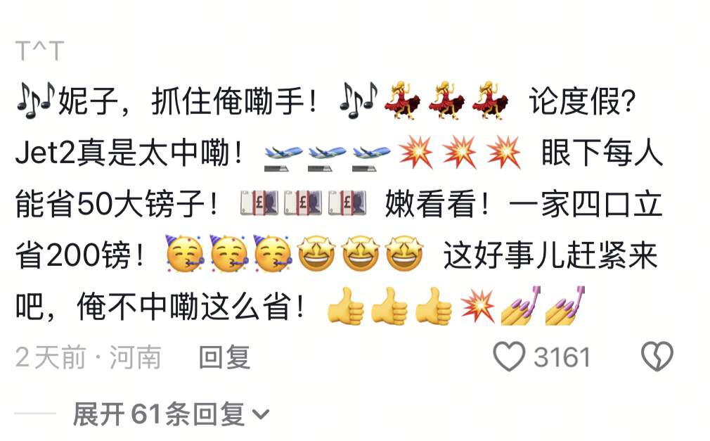 你要问Jet2holiday是啥?其实就是一家广告公司,上面那段话的中心思想就是“快来看,机票打折了,立省200元”。