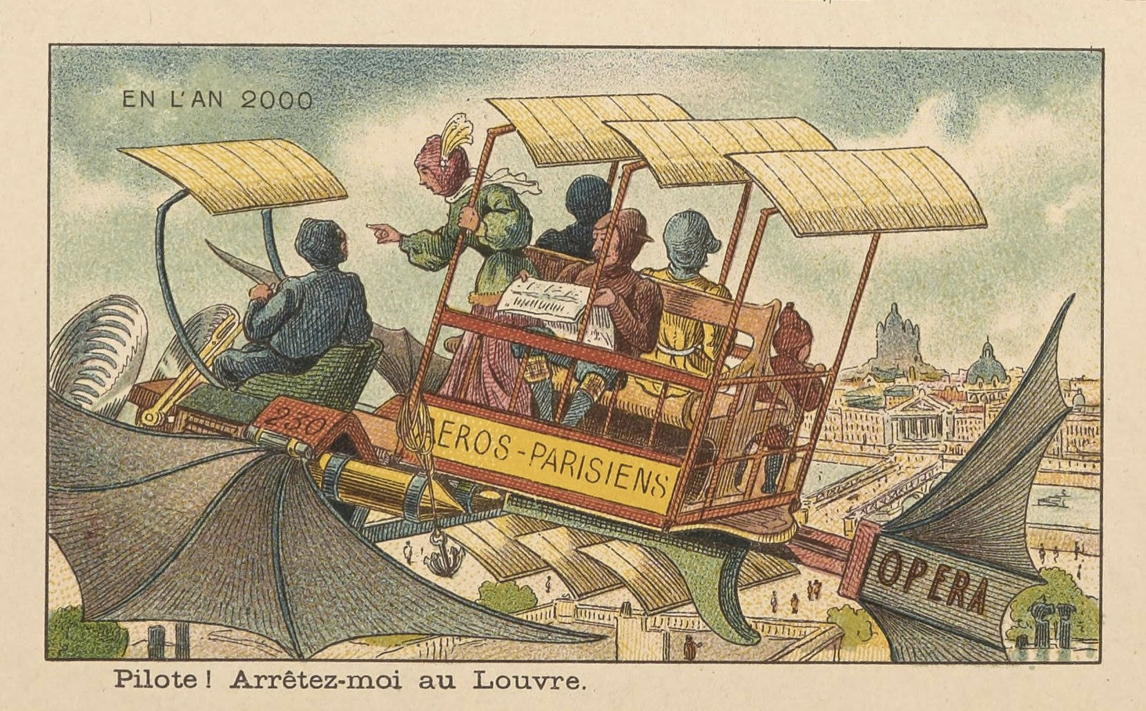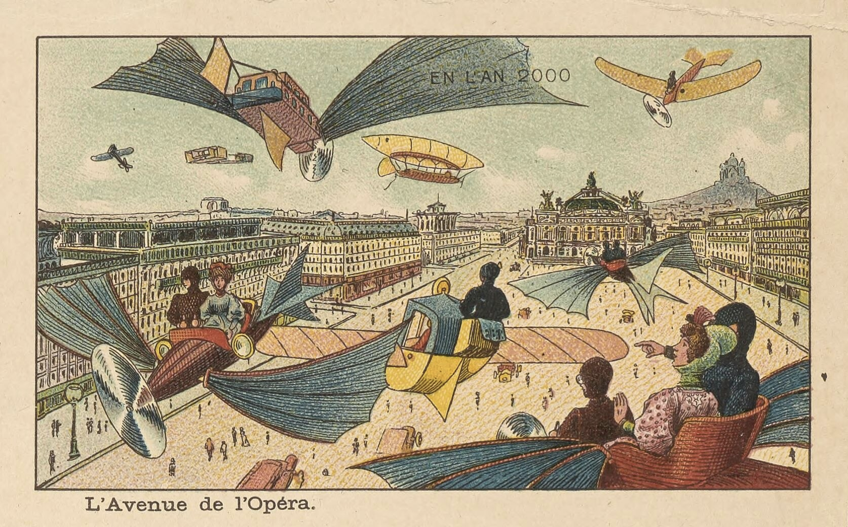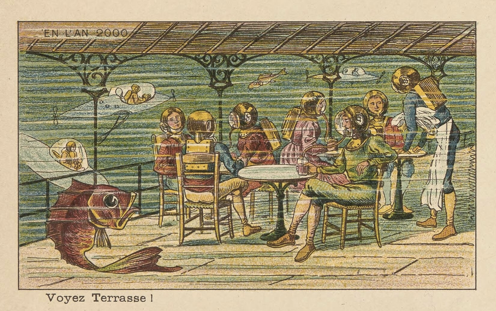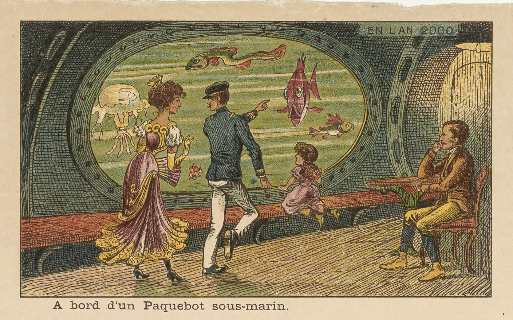 当然,也有许多设想暴露了当时想象力的局限,比如螺旋桨遍布的设备和无处不在的十九世纪服饰设计。