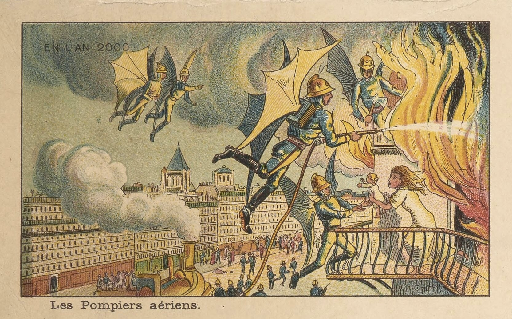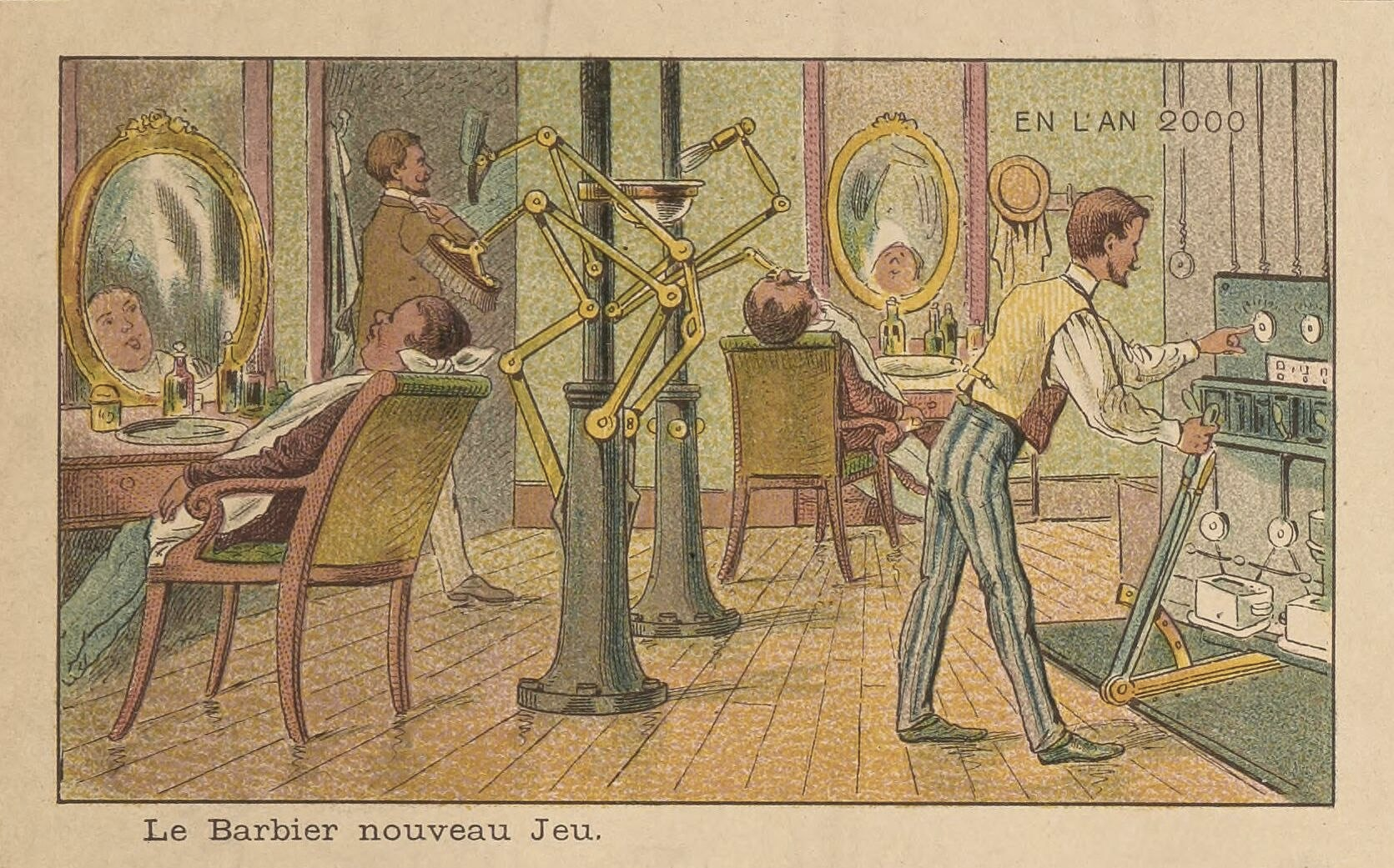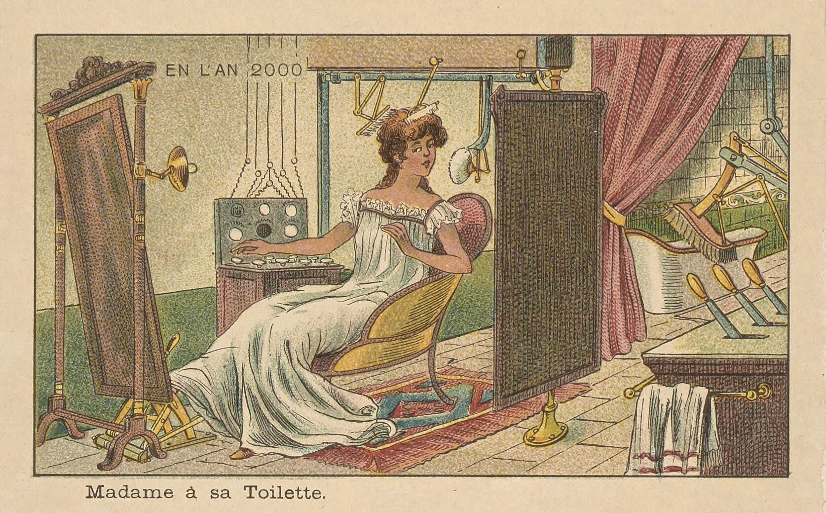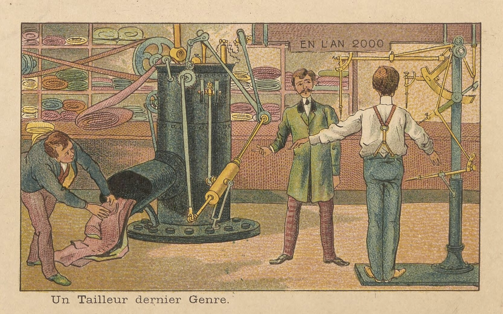 当然,也有许多设想暴露了当时想象力的局限,比如螺旋桨遍布的设备和无处不在的十九世纪服饰设计。