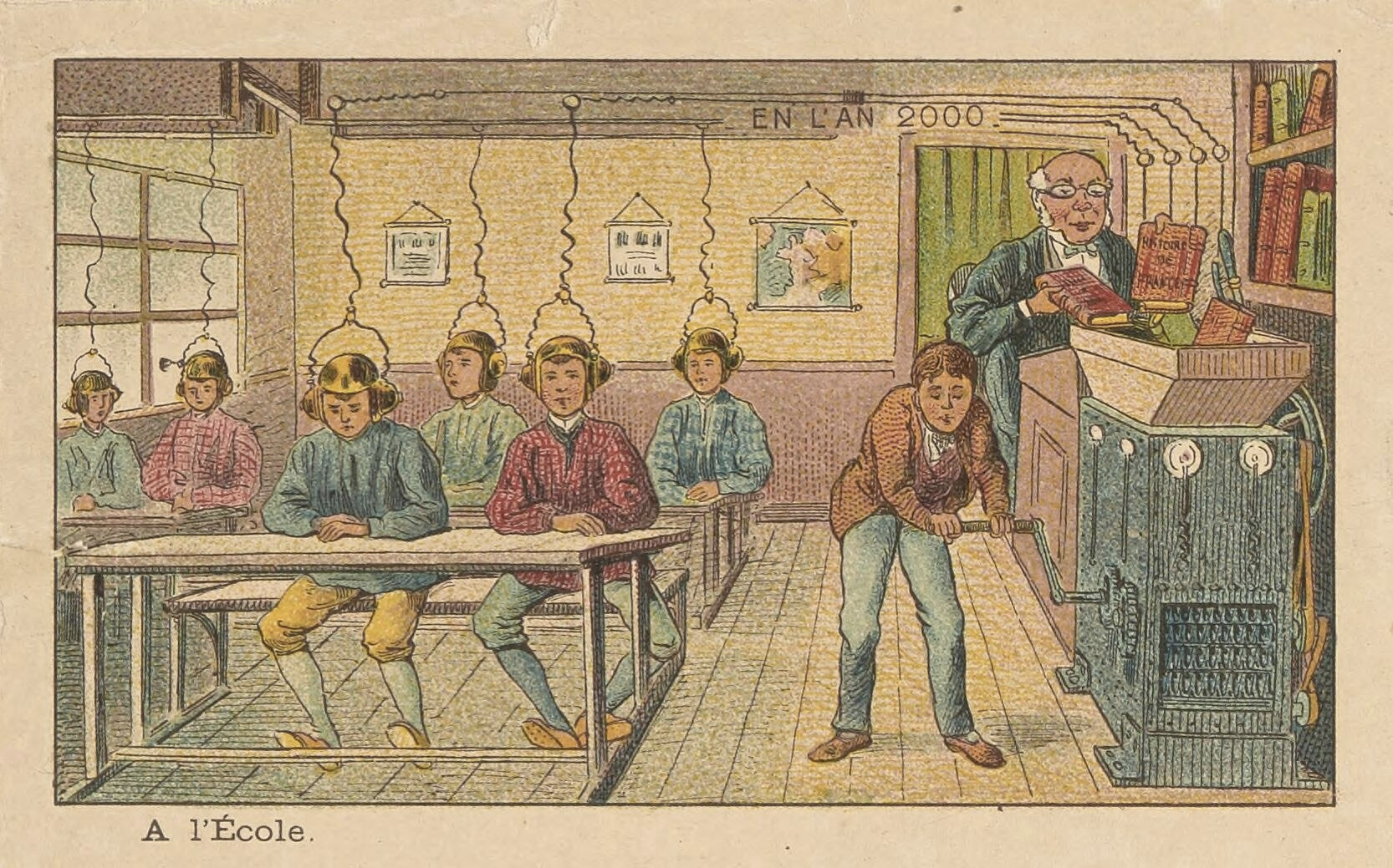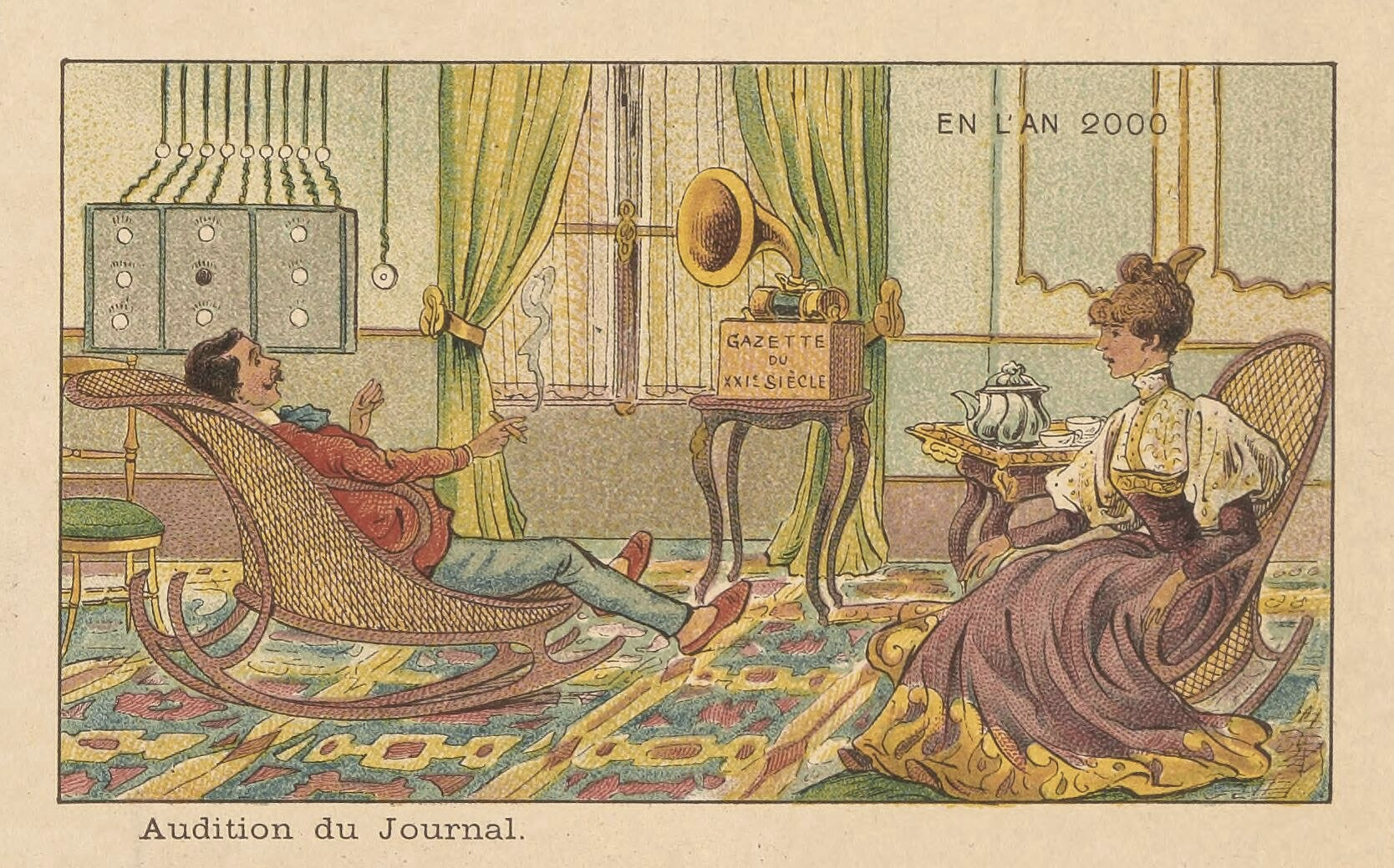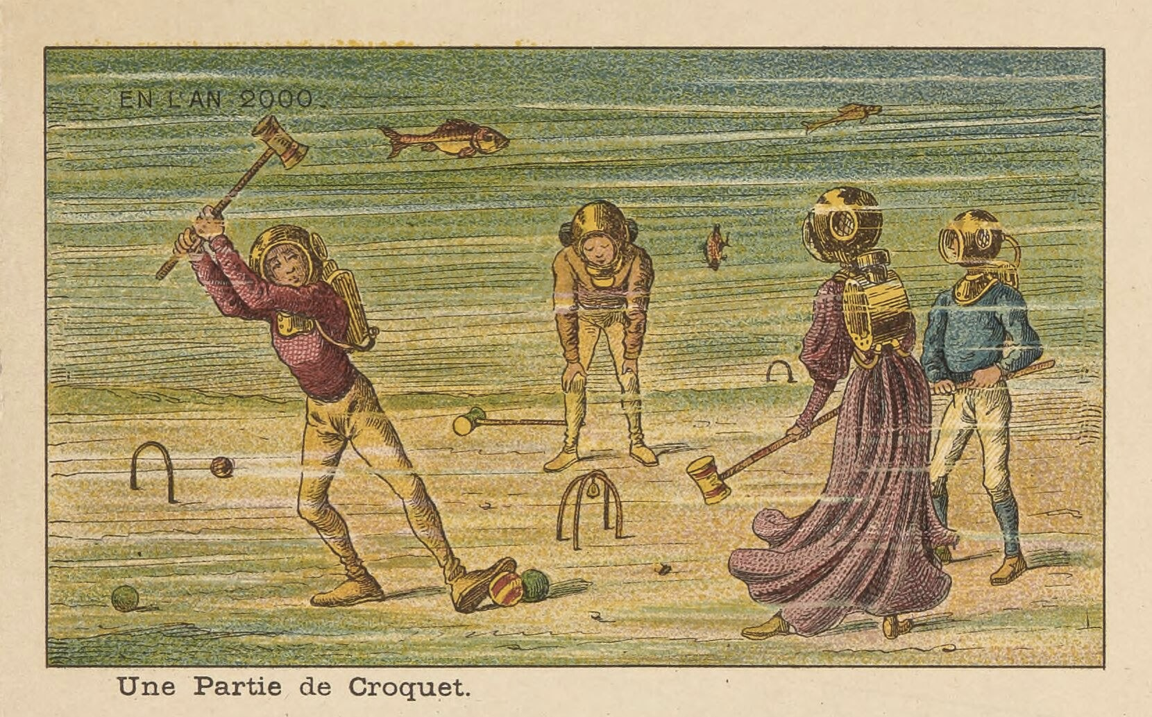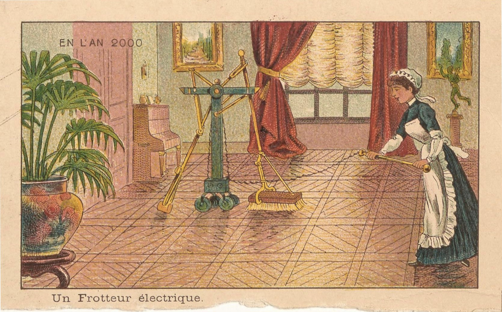 当然,也有许多设想暴露了当时想象力的局限,比如螺旋桨遍布的设备和无处不在的十九世纪服饰设计。