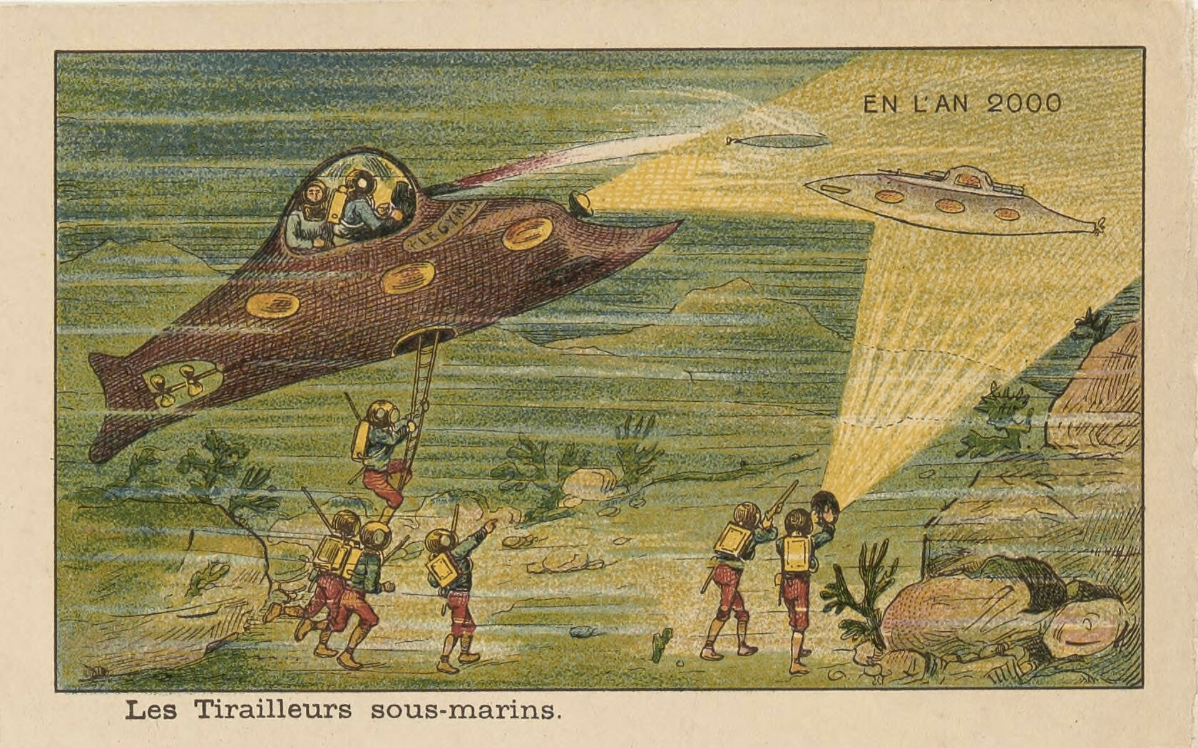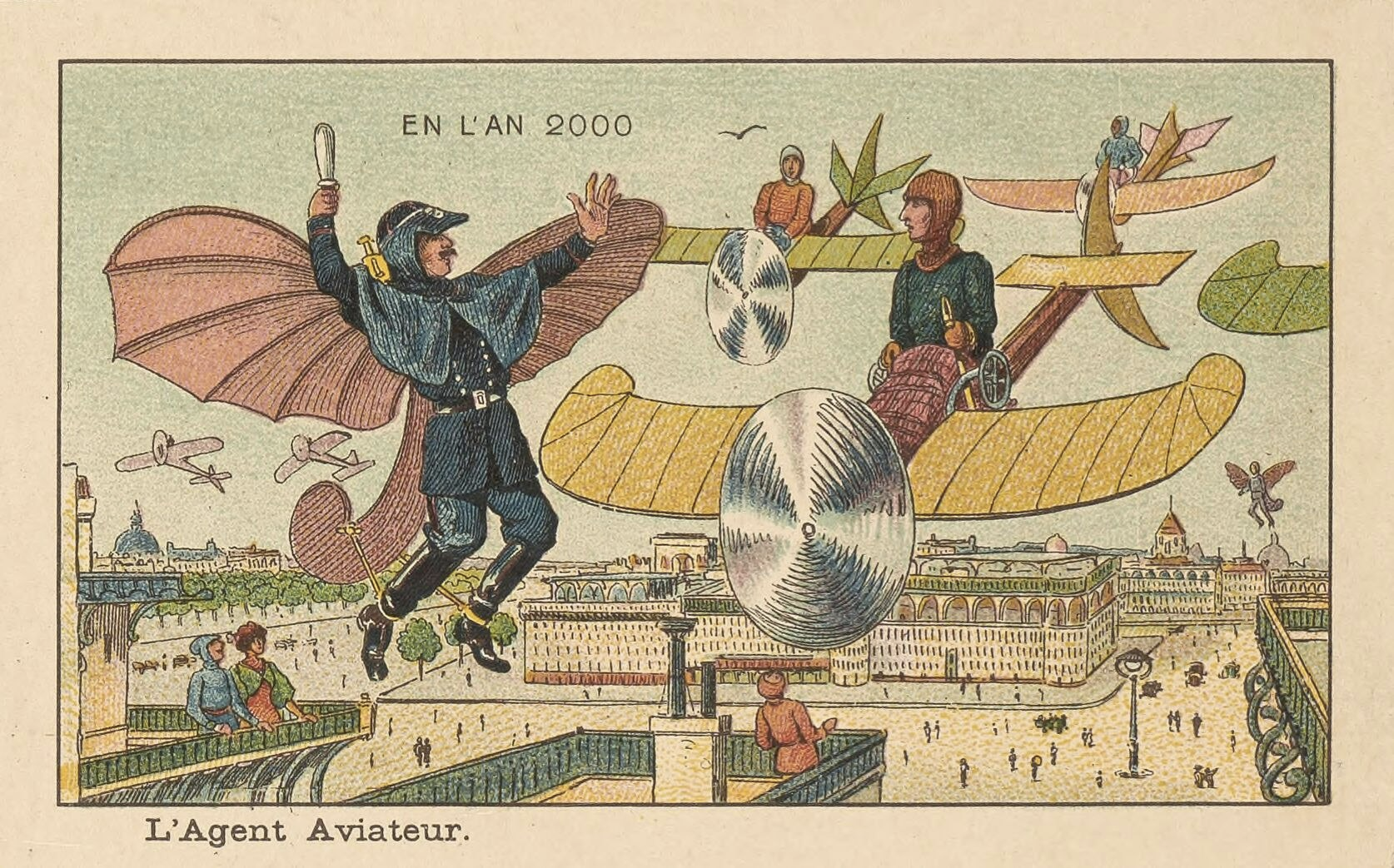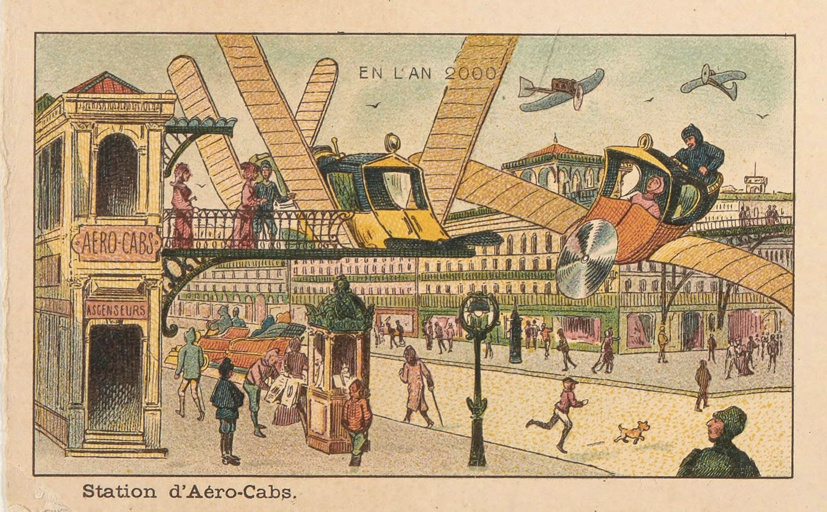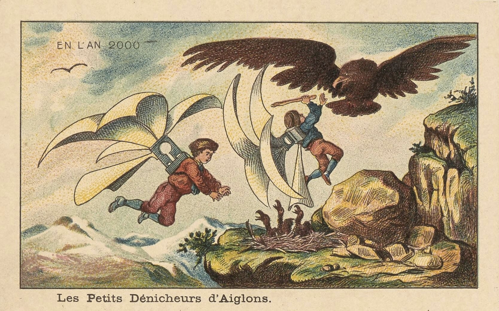 今天分享一组由法国里昂玩具制造商 Armand Gervais委托画师 J.-M. Côté,为1900年巴黎世界博览会委托制作的香烟卡,上面描绘了当时人们对21世纪的奇幻想象。