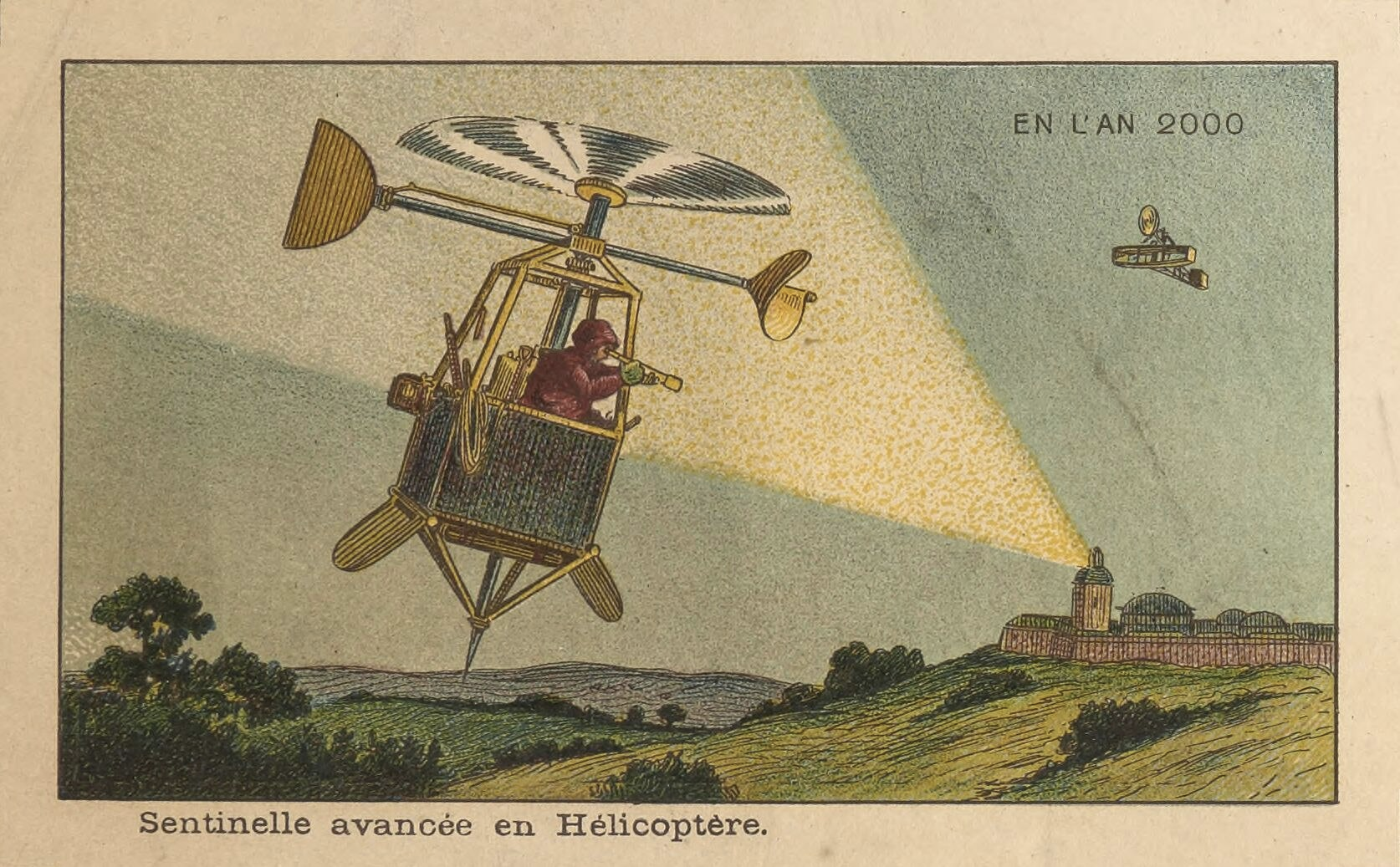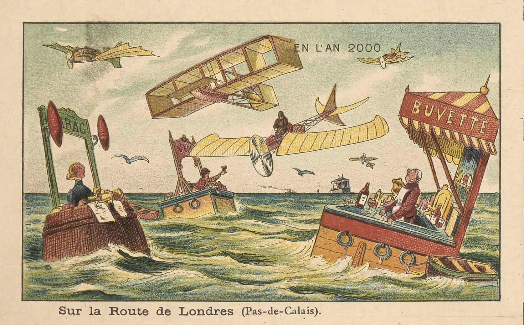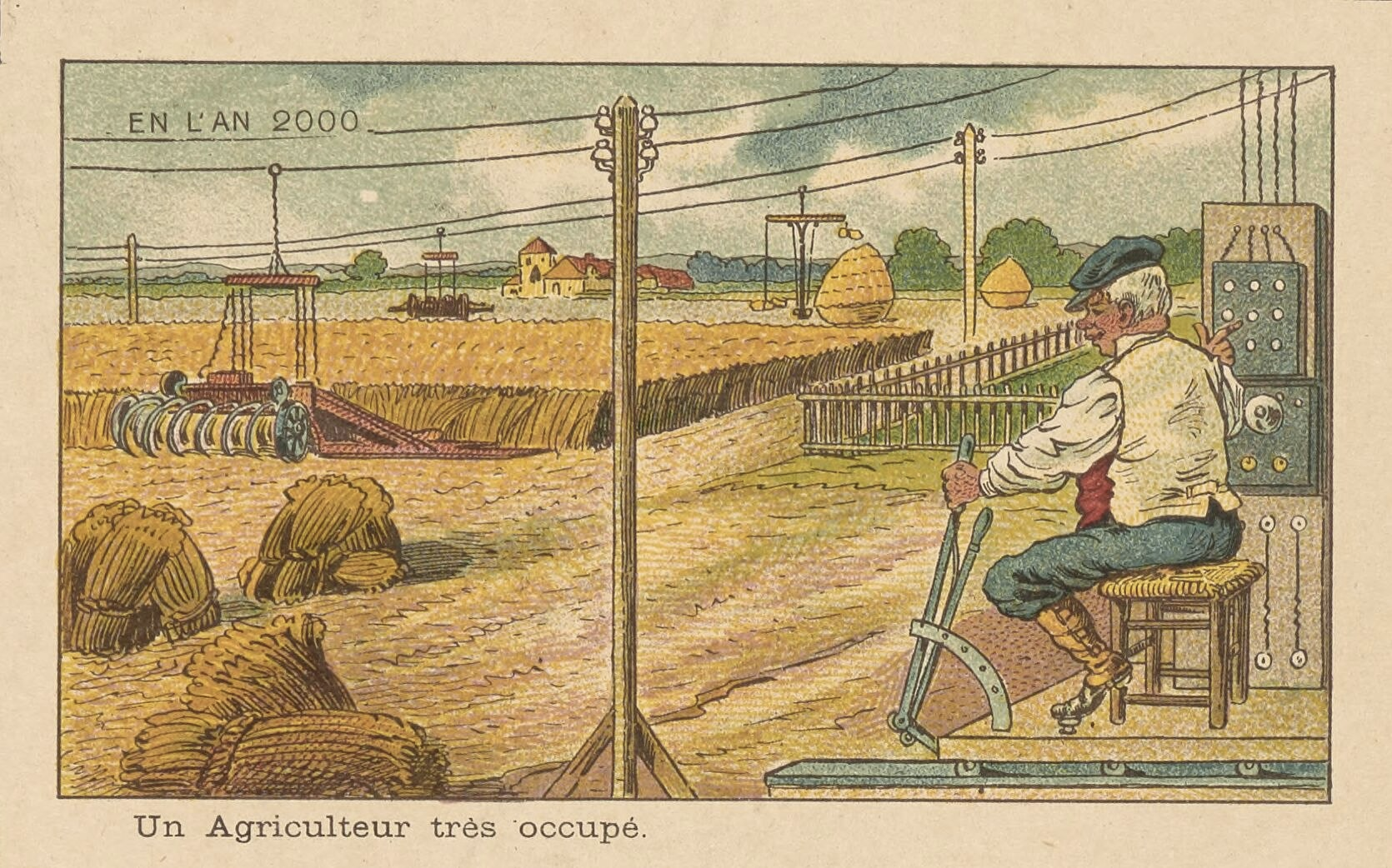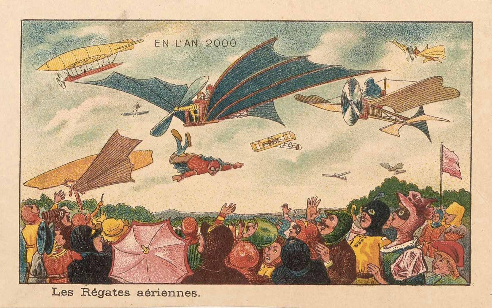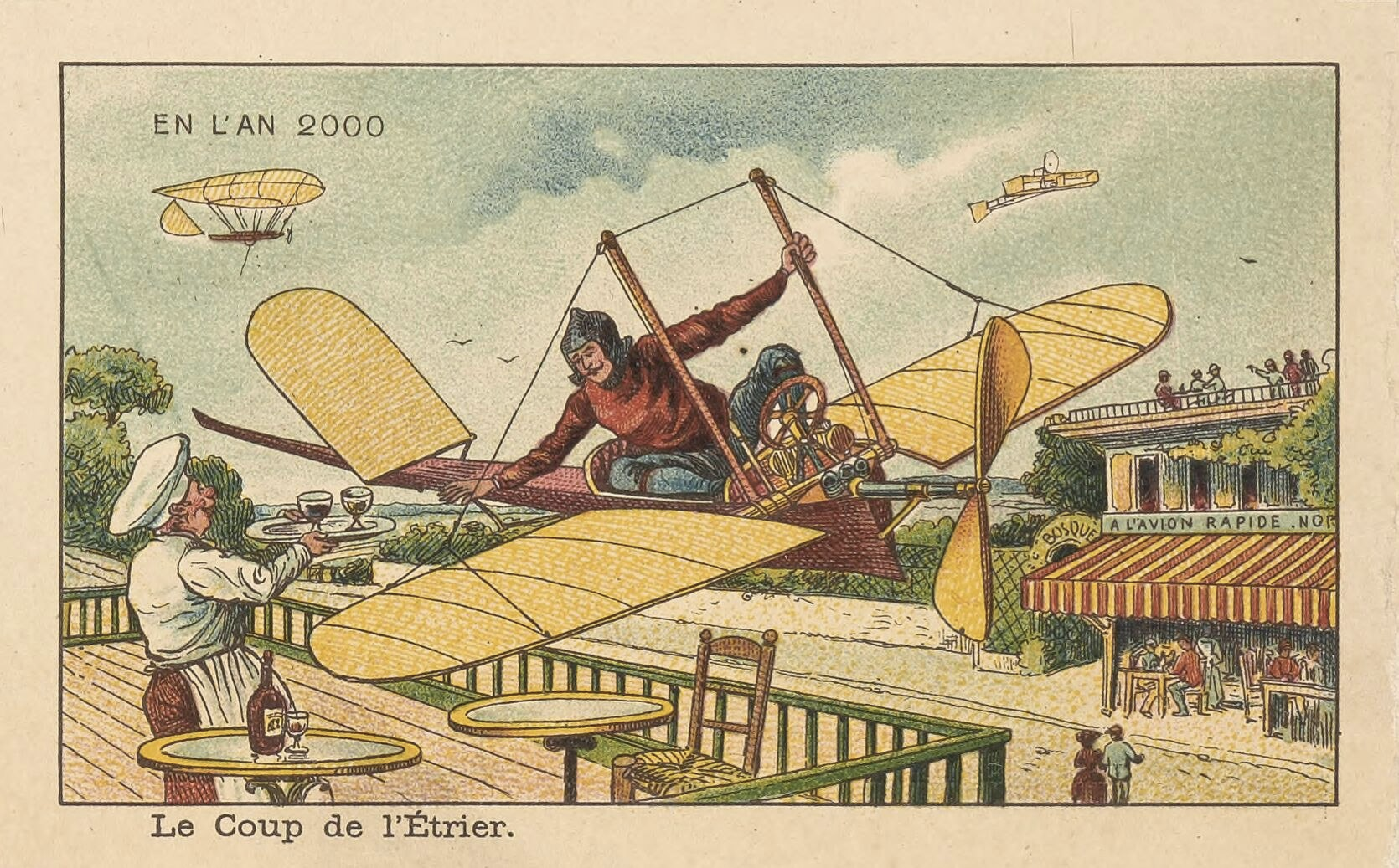 今天分享一组由法国里昂玩具制造商 Armand Gervais委托画师 J.-M. Côté,为1900年巴黎世界博览会委托制作的香烟卡,上面描绘了当时人们对21世纪的奇幻想象。