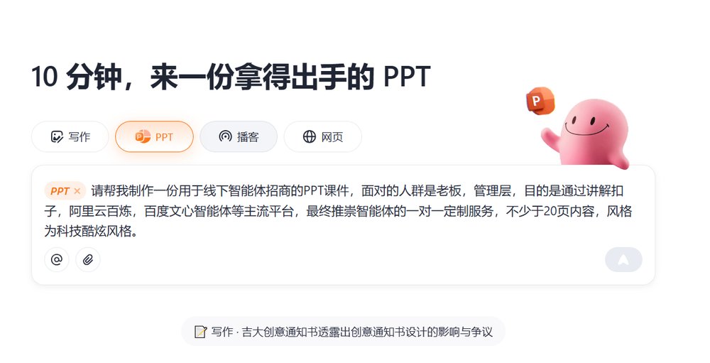 今天针对现在ai做ppt最容易的一种使用方式,就是一句话输入主题想法生成ppt,用扣子空间,豆包,智谱做了一个对比测试,看看哪个效果要更好一些。