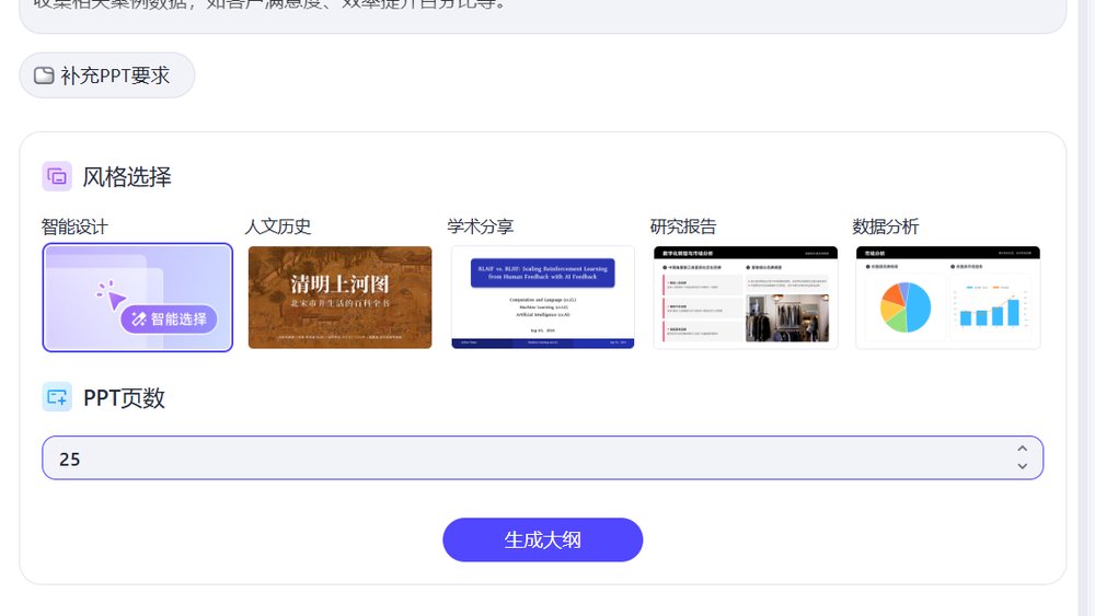 一句话生成的这种适合我们什么材料都没有,同时基本不会做ppt的童鞋,没什么内容,没什么想法,全都交给ai制作。