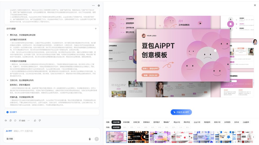 豆包主页点击aippt,同样是输入主题,中间仍然也是提醒你选模版,修改大纲内容等等。