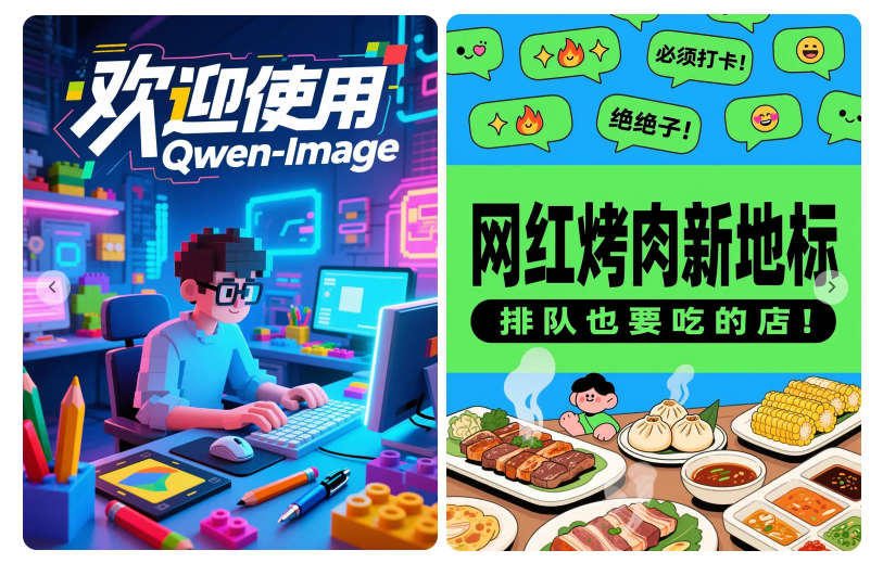 ✅ 中英文文字排版一体化生成,可控字体/位置/构图,复杂内容不再贴字;