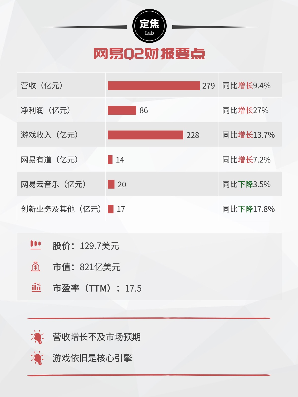 其中,网易游戏收入228亿元,同比上涨13.7%。经典 IP《梦幻西游》电脑版同时在线人数再创新高,手游季度收入亦创新高。