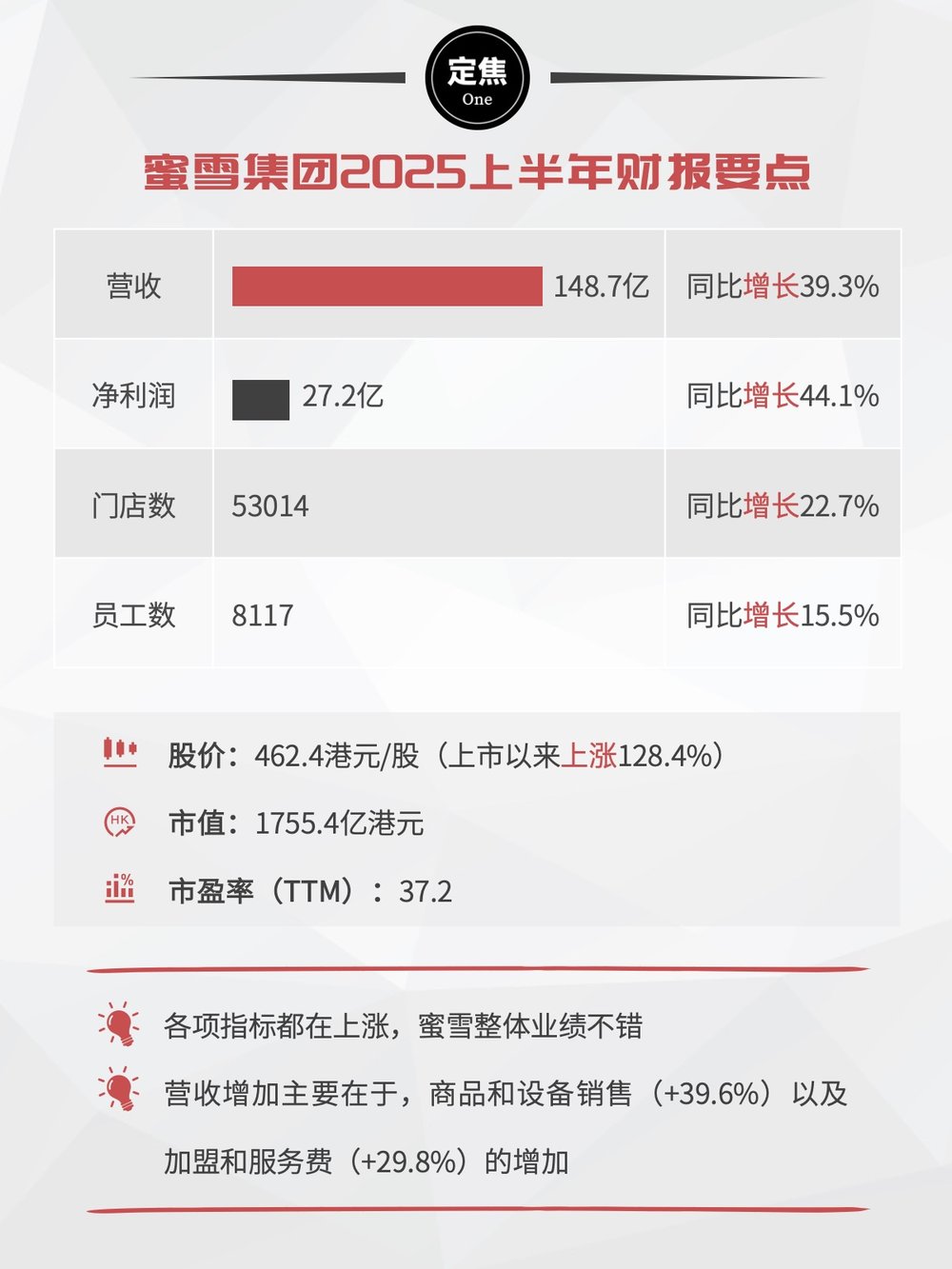 2025上半年,蜜雪集团总营收148.7亿,同比增长39.3%,期内利润27.2亿,同比增长44.1%。