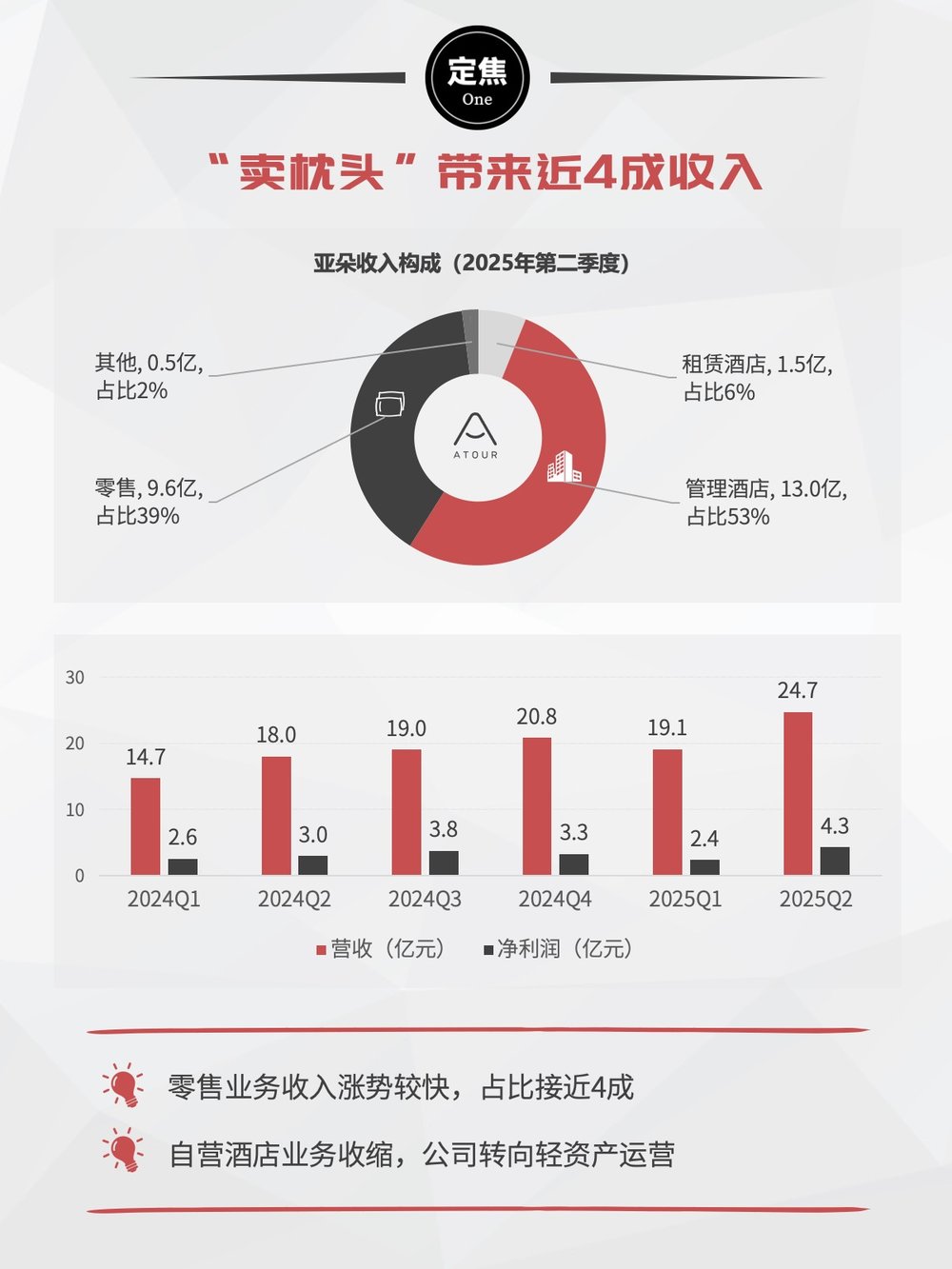 双方业务结构差异进一步明显。亚朵依托零售业务 79.8% 的同比增长,形成了 “酒店 + 零售” 的多元收入结构,零售收入占比已提升至 39%;华住则持续聚焦酒店主业,未来重点在于通过优化规模与运营效率巩固优势。