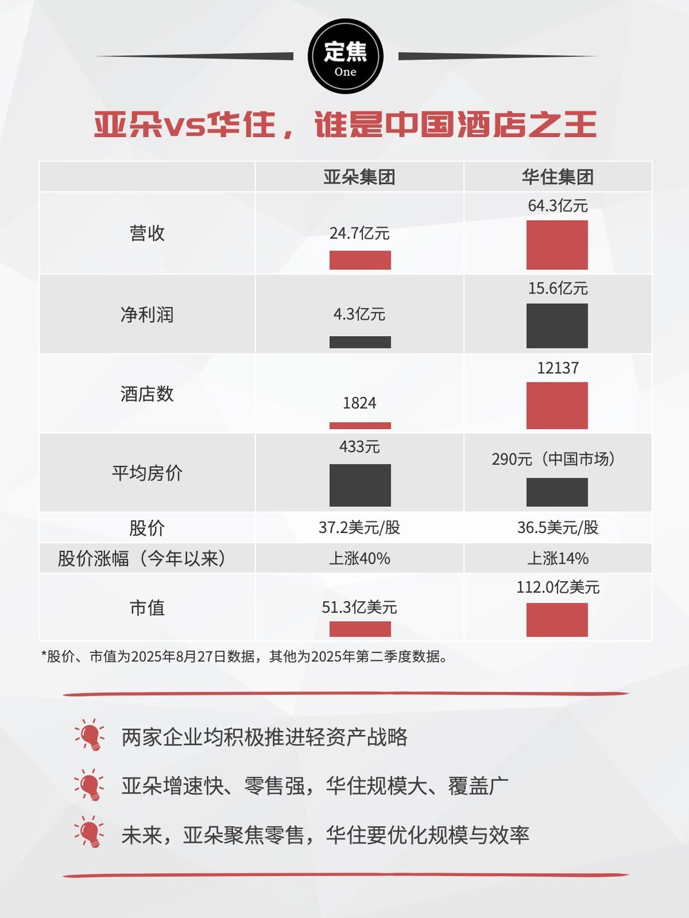 截至8月27日美股收盘,亚朵报37.2美元/股,华住报36.5美元/股。