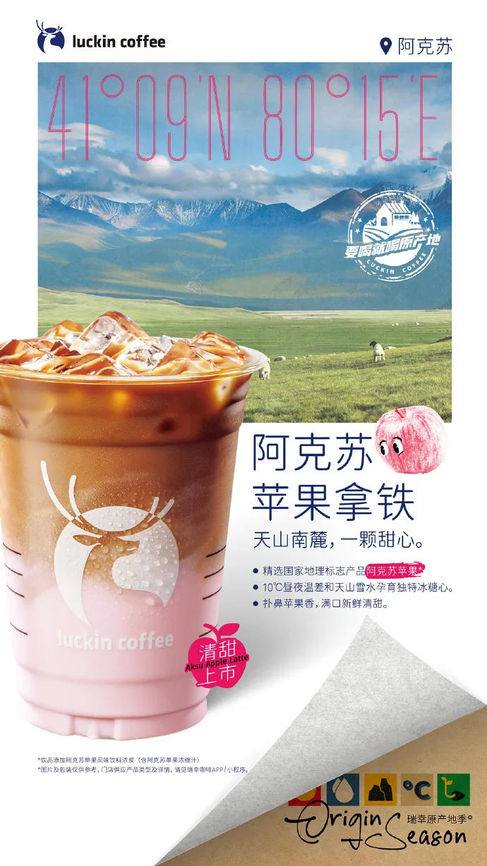 3、加码原产地布局!瑞幸咖啡上新「阿克苏苹果拿铁