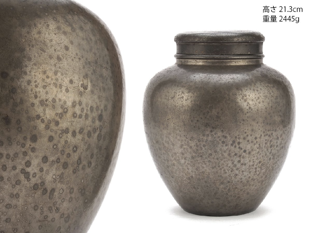 锡茶罐是东方收藏领域近两年比较关注的单品。像上面这种高21.3㎝、重2445g,被认为是锡斑漂亮的罐子,在去年日本梦工坊以53.3万日元的价格成交