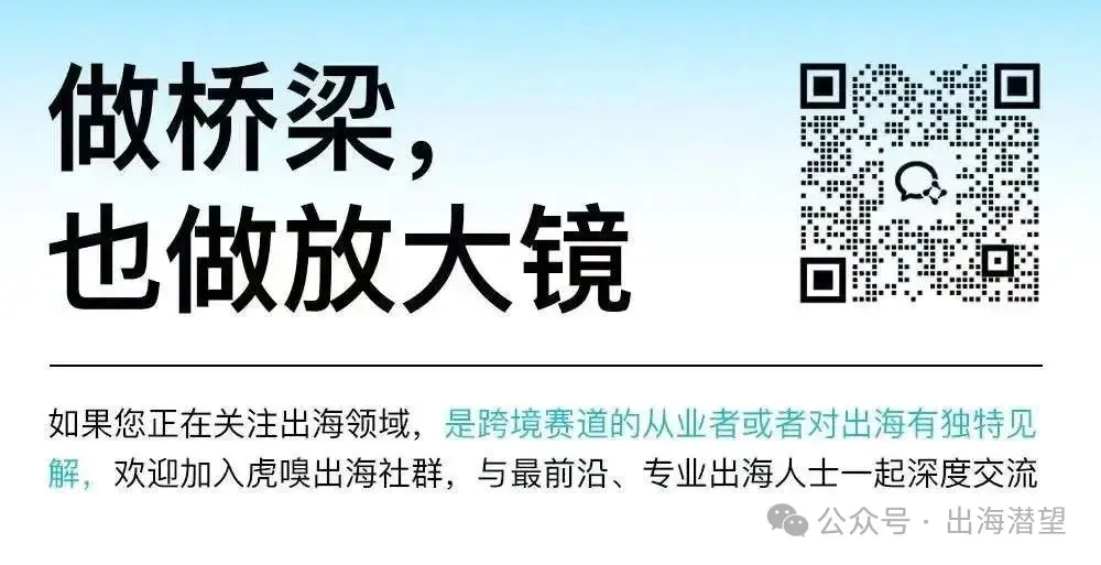 虎嗅已推出「出海潜望镜俱乐部」,八大区域,五千人社群,挖掘财富风向标,共探实战经验,扫清出海障碍。扫码即刻加入。同步领取1000+份高价值出海报告,共创出海未来!