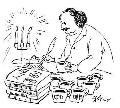 先说咖啡,这应该是出镜频率最高的写作饮料。最著名的“咖啡鬼”是巴尔扎克。