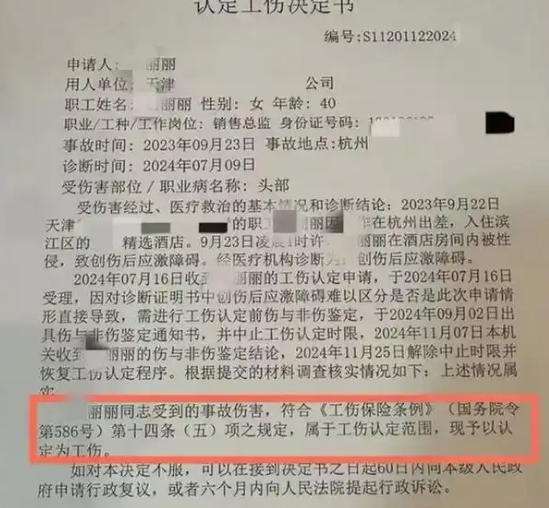 不过丽丽没有选择默默忍受。她前往天津市津南区人社局申请工伤认定。2024年12月3日,丽丽收到了天津市津南区人社局出具的认定工伤决定书,认定她受到的事故伤害属于工伤认定范围。这对丽丽来说意义重大,意味着她的遭遇得到了认可。