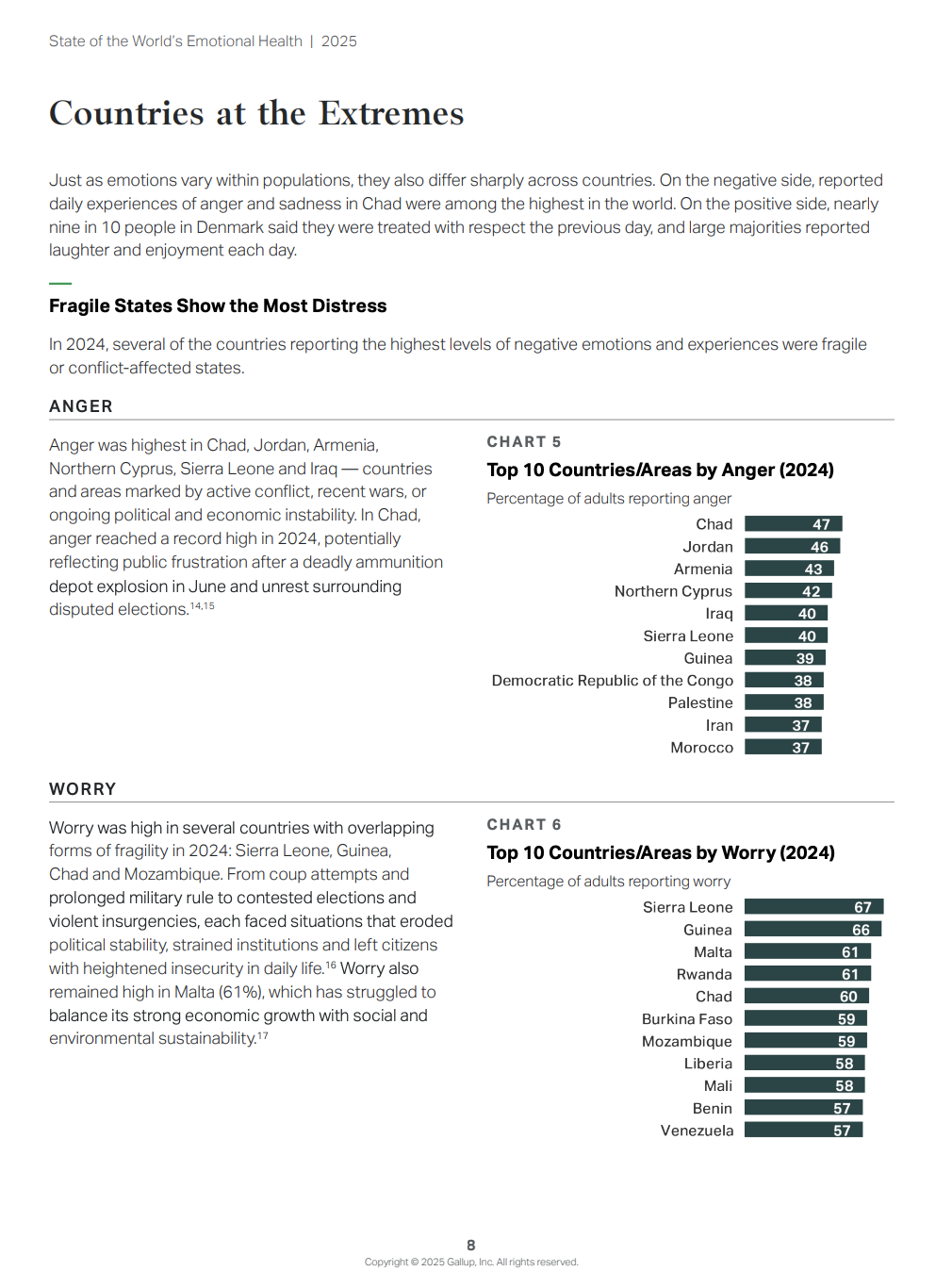其一,是贫富问题,富裕国家的负面情绪下降,愤怒减少,而贫穷国家的情绪却在恶化。