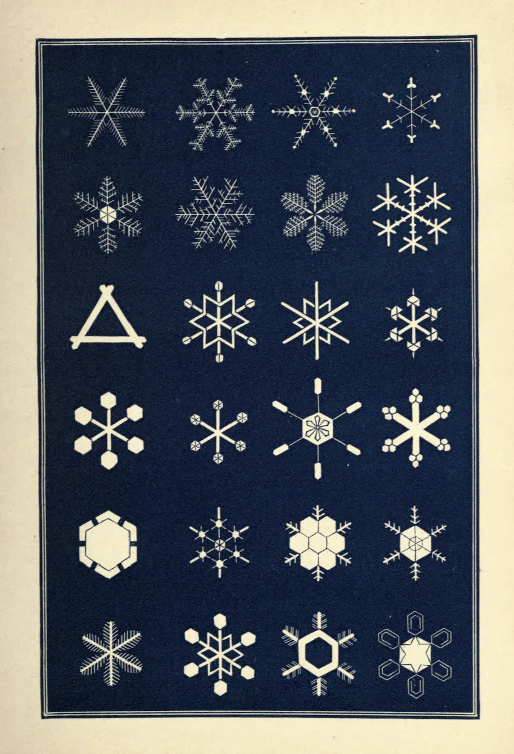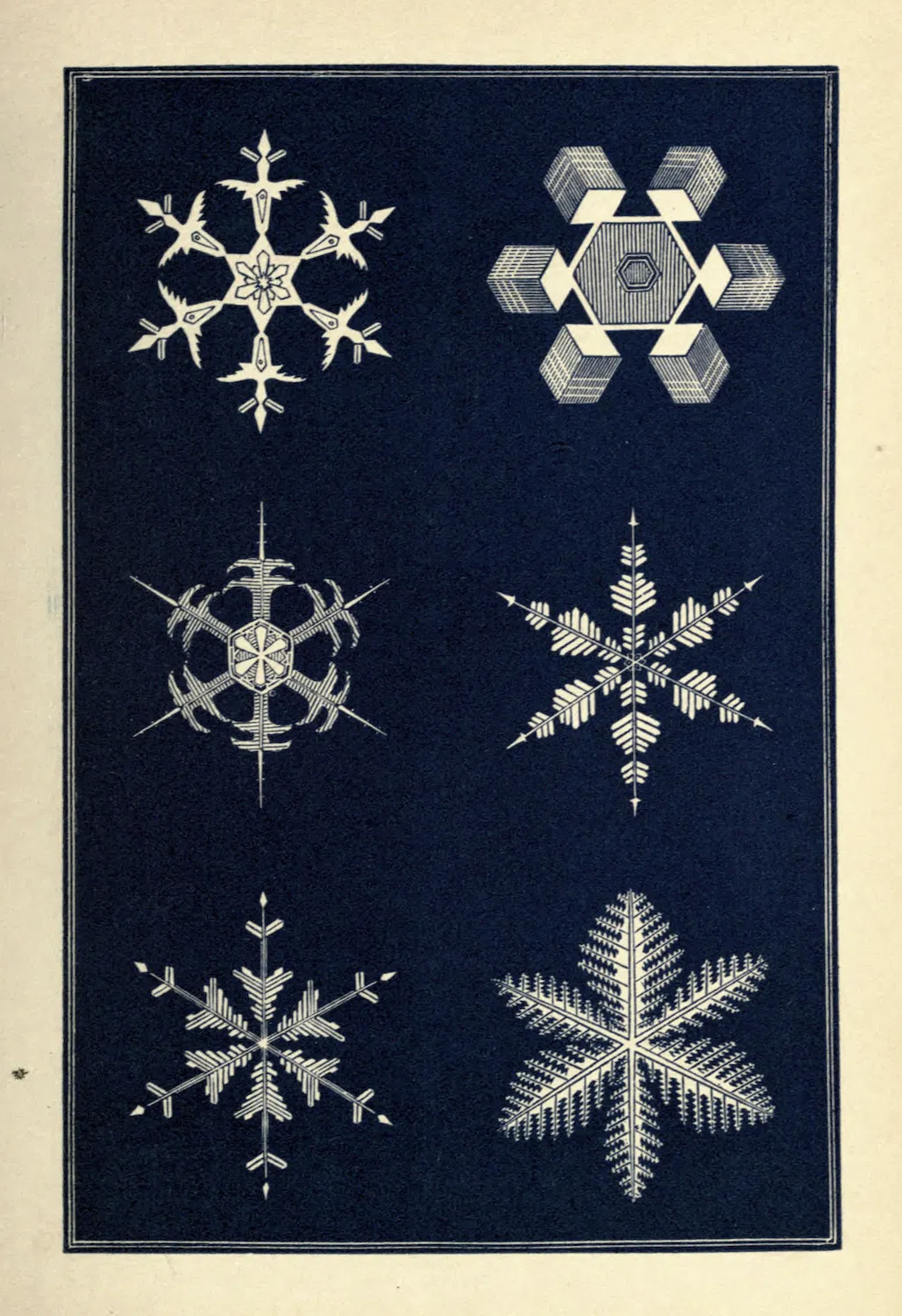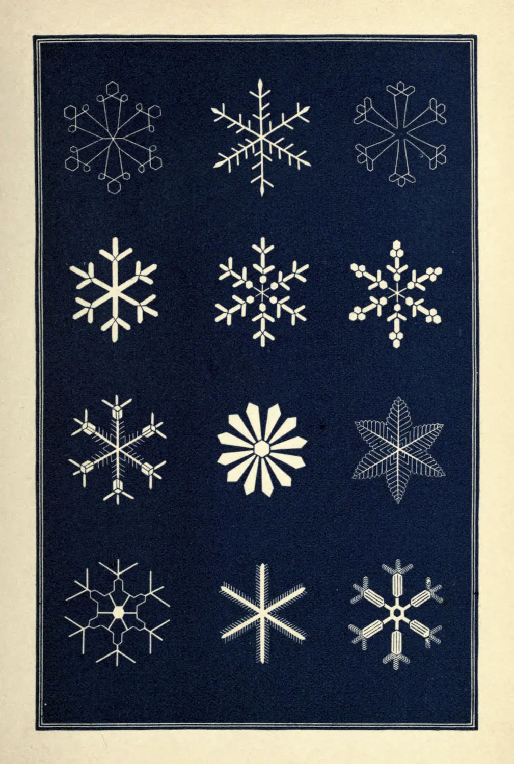 比如,Israel Perkins Warre在书中一开始谈雪的结构,却很快说科学研究并不能解释雪花的奥秘。他认为,雪花是由世界各地的水蒸气在造物主的旨意下凝结而成的,象征着纯洁、美丽和神圣。