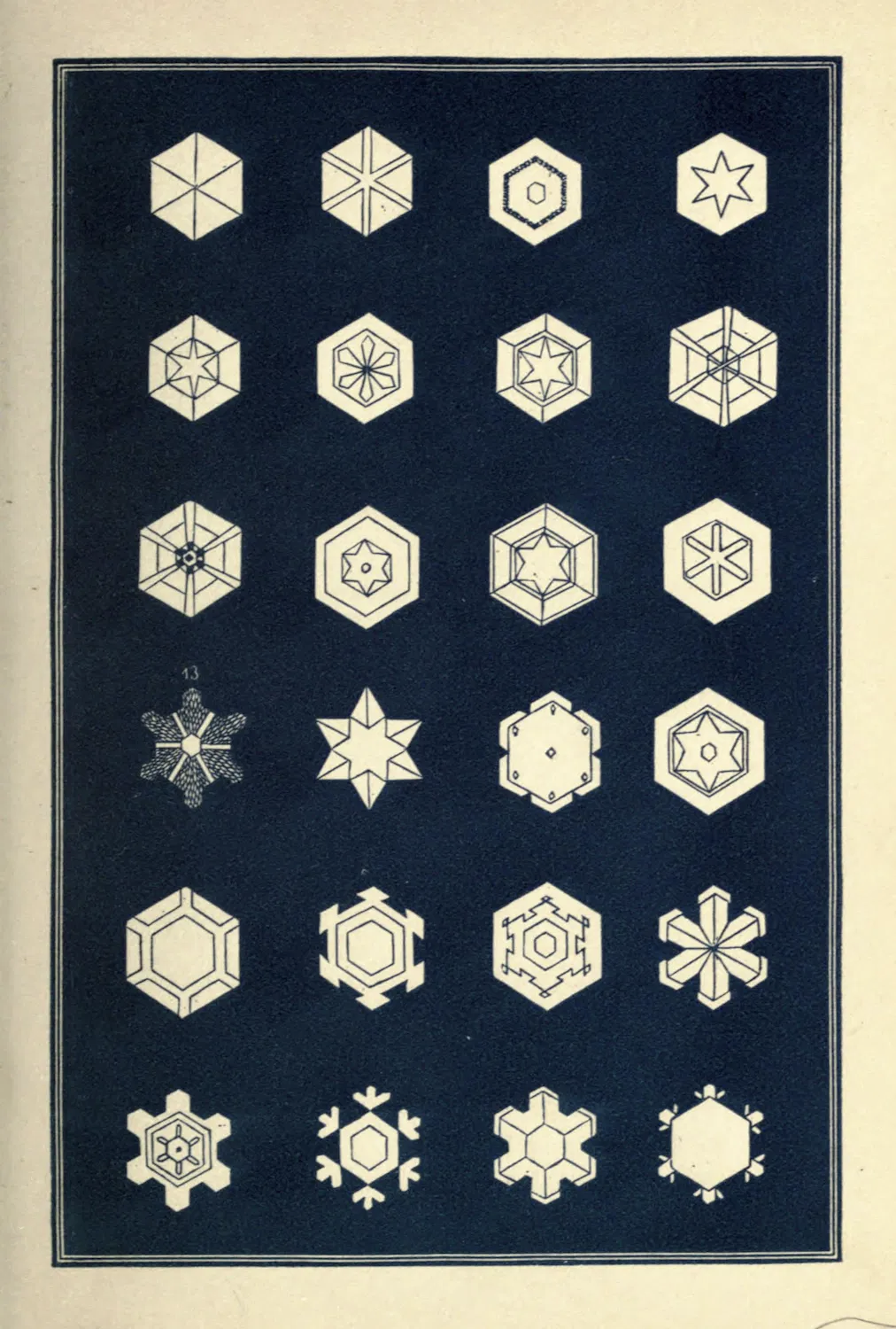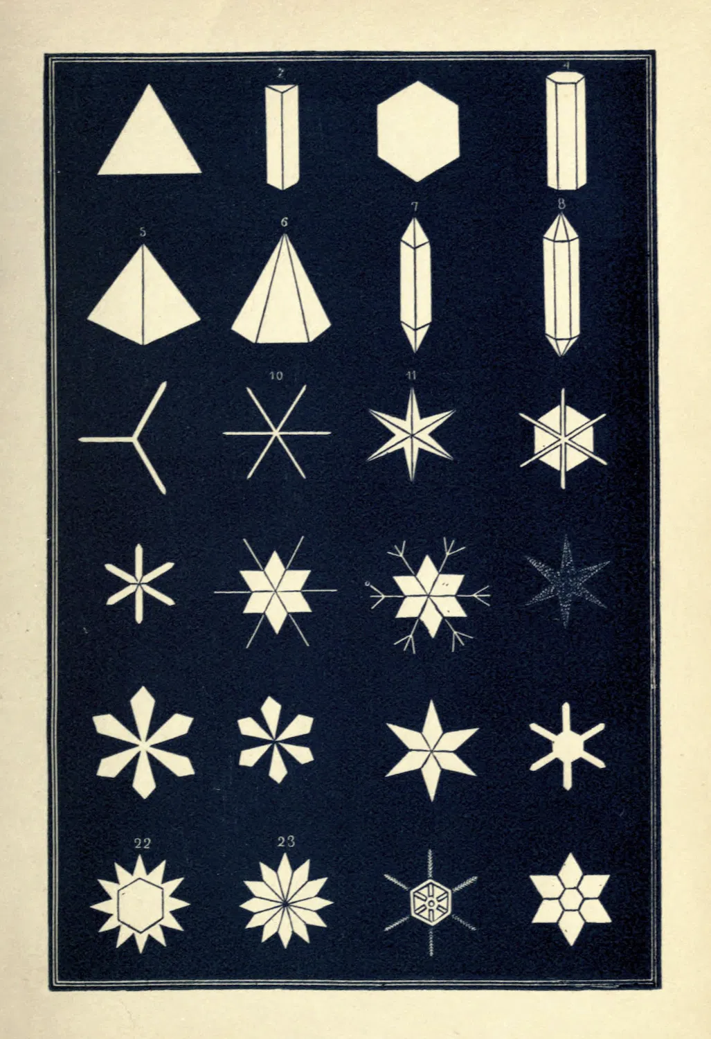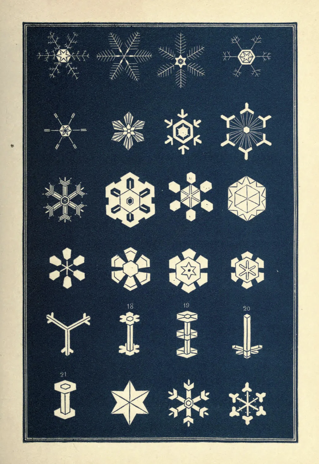 比如,Israel Perkins Warre在书中一开始谈雪的结构,却很快说科学研究并不能解释雪花的奥秘。他认为,雪花是由世界各地的水蒸气在造物主的旨意下凝结而成的,象征着纯洁、美丽和神圣。